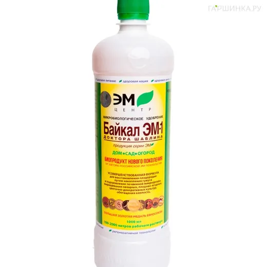 «Байкал ЭМ-1» - готовый микробиологический препарат, включает симбиотический саморегулирующийся комплекс заведомо отобранных природных регенеративных микроорганизмов, в том числе фотосинтезирующих, молочнокислых, фиксирующих азот, сахаромицетов, продуктов их жизнедеятельности и жидкость, получаемую при культивировании.