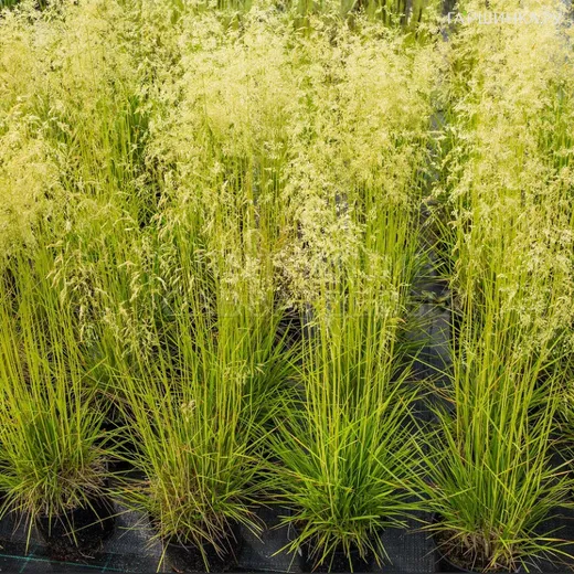 Луговик (Щучка) Бронзешляйер - Декоративный злак, отрастающий рано весной. Образует плотные кочки высотой 60 см с большим количеством узких, жёстких, тёмно-зелёных листьев. Цветоносы высотой 80-100 см. Соцветия-метёлки изящные, раскидистые. Колоски блестящие, мелкие, светло-бронзовые, при созревании коричневые.