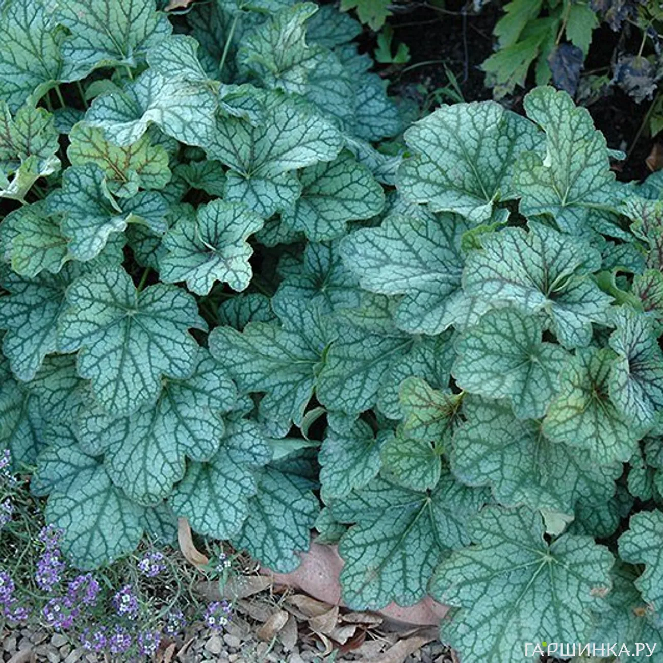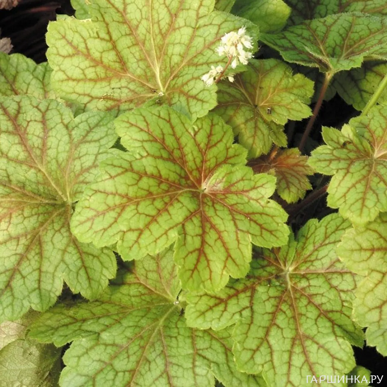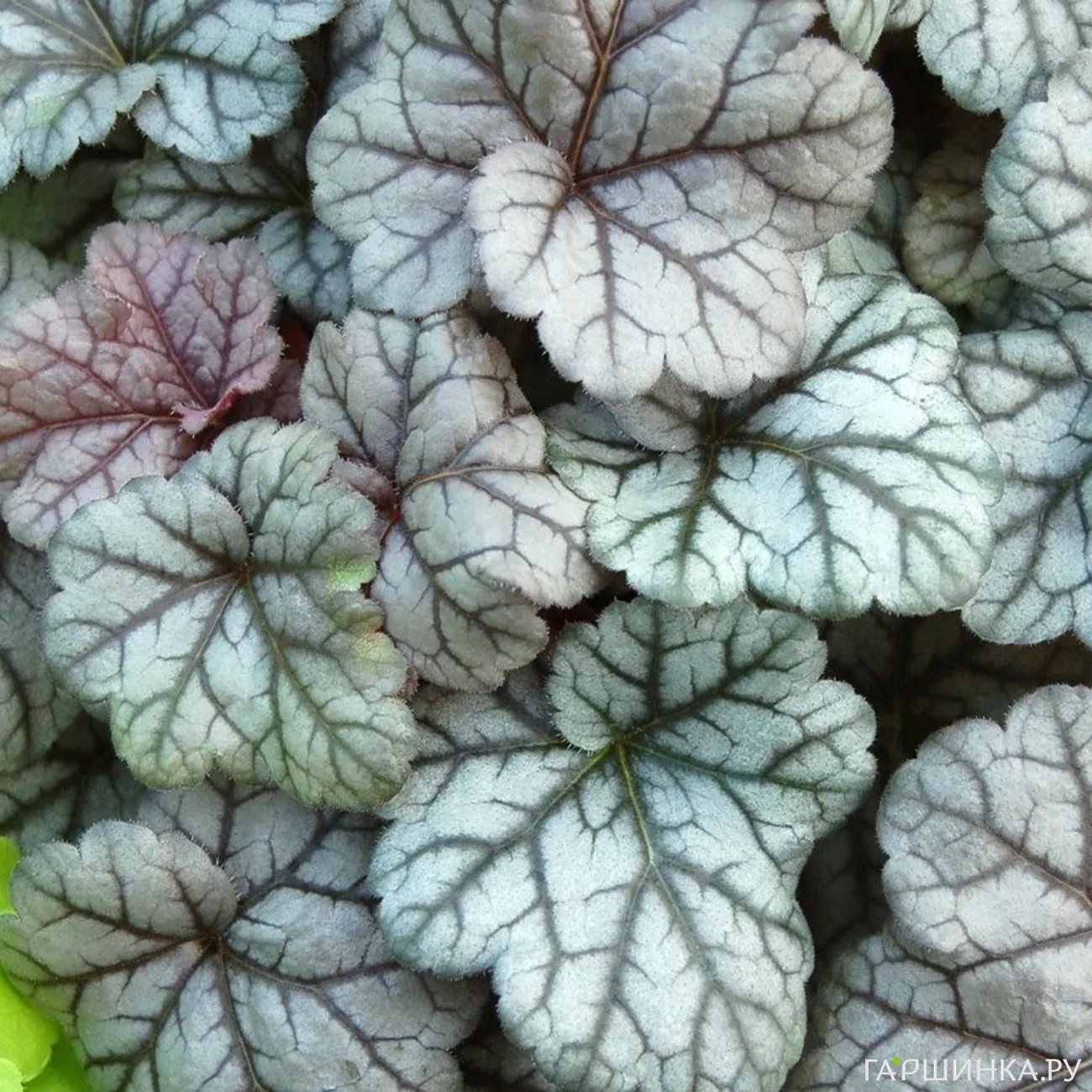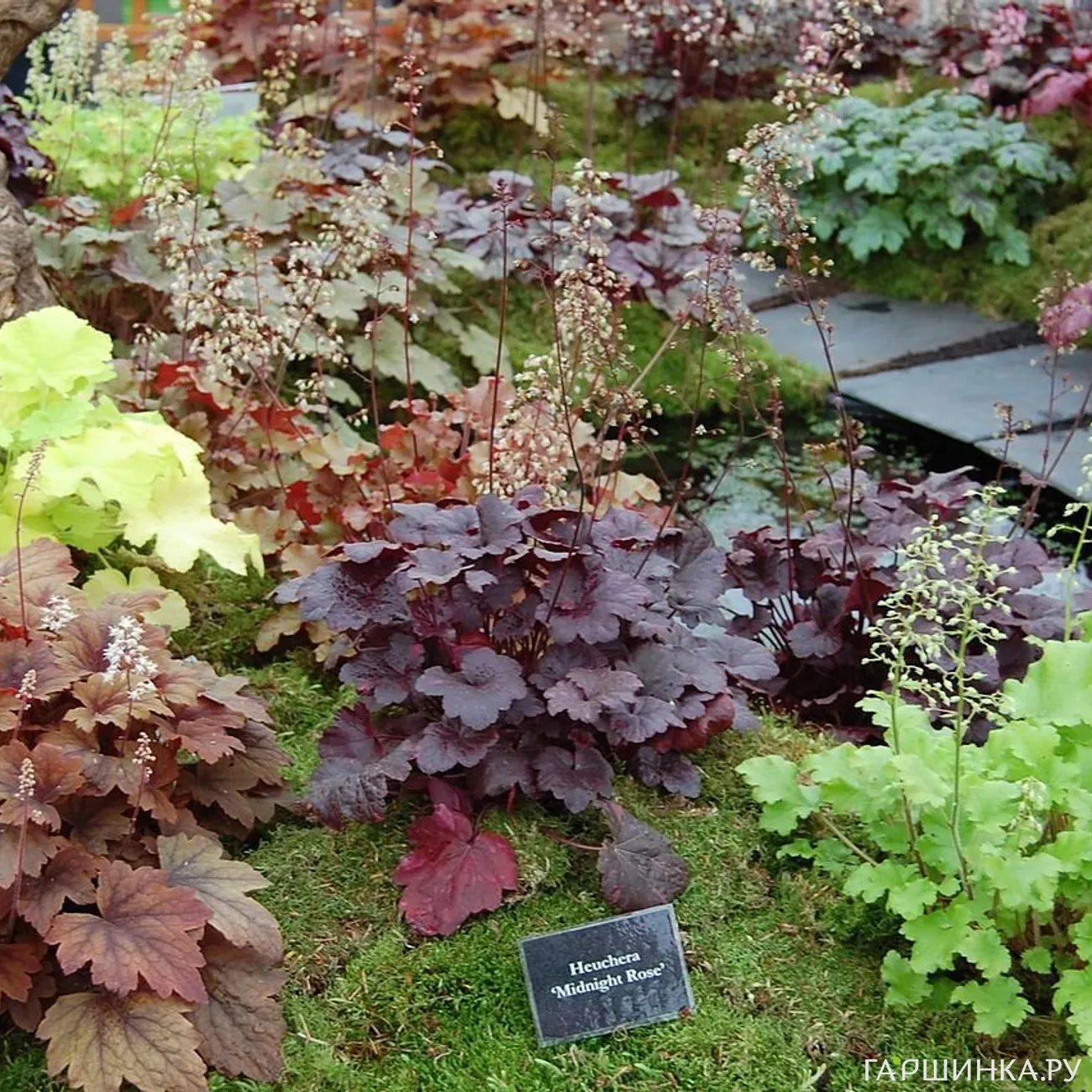 - Вельвет Найт. Листья крупные, немного гофрированные, почти черные с металлическим оттенком. Один из лучших сортов гейхеры.