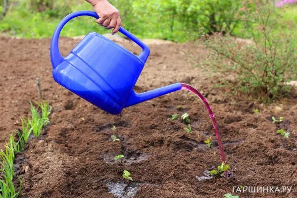 - Обеззараживание грунта для рассады. Подогрейте воду до +65...+70 градусов, добавьте кристаллы марганцовки, чтобы получился ярко-розовый раствор. Обильно полейте им грунт, а когда почва остынет, приступайте к посадке.