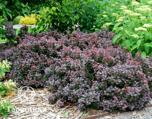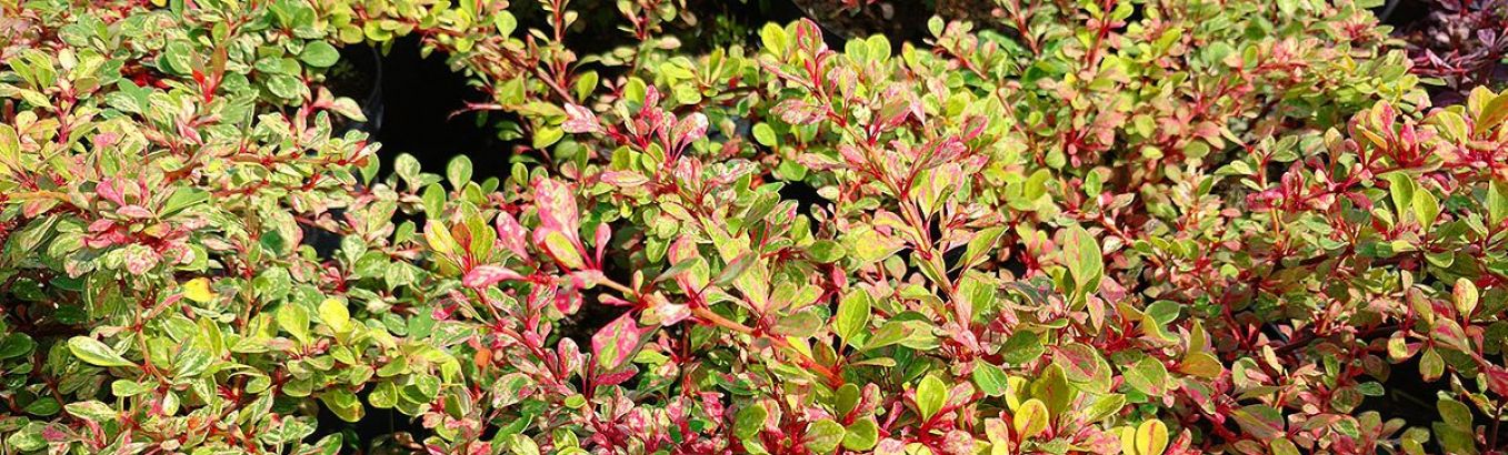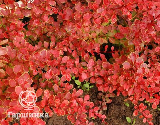 - Барбарис Коралл. Высота до 1 м. Имеет очень интересные листья – кораллово-малиновые с желто-зеленой каймой в течение всего сезона. Цветки двуцветные - внутри желтые, снаружи красные, до 1 см в диаметре.