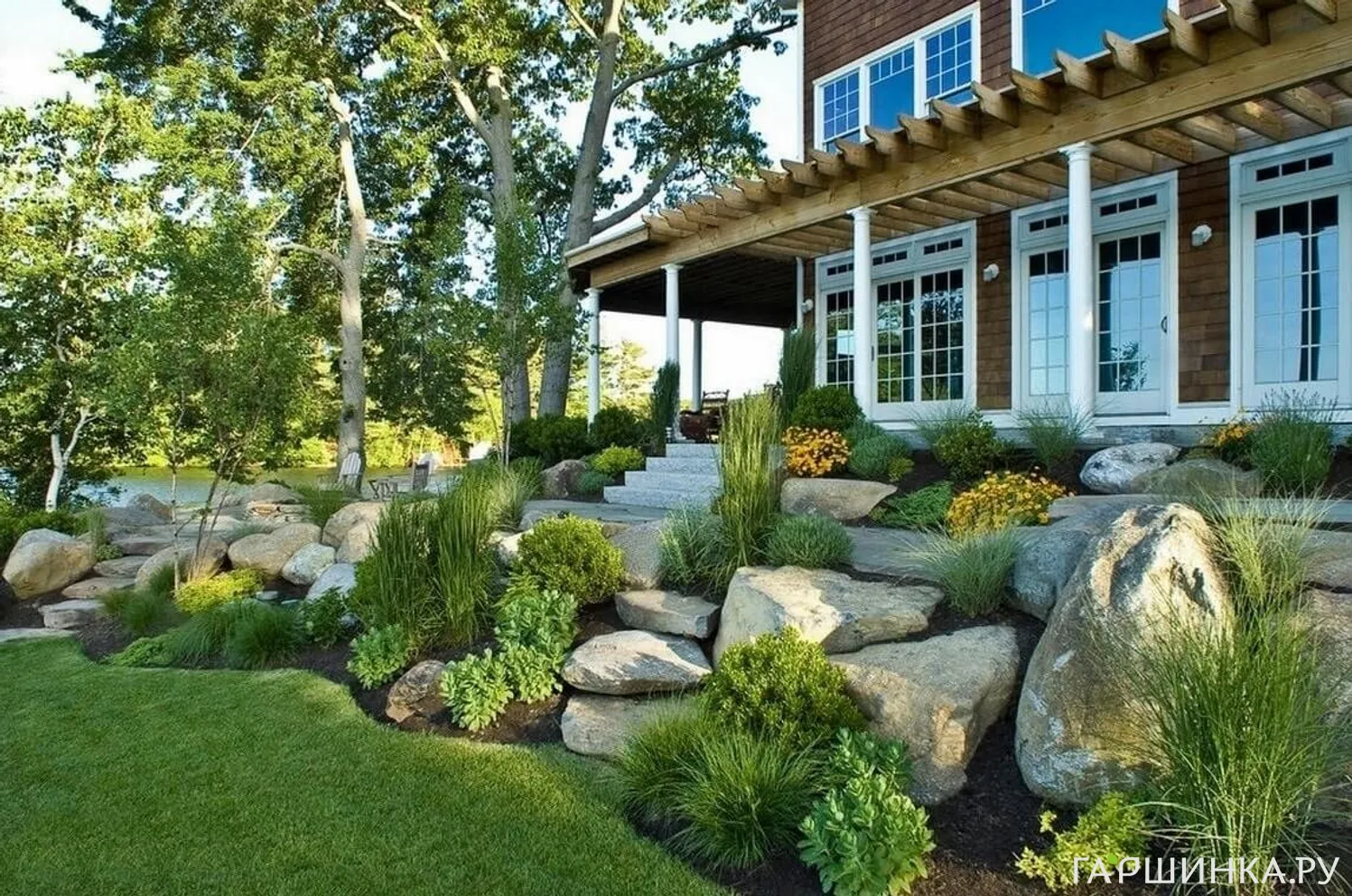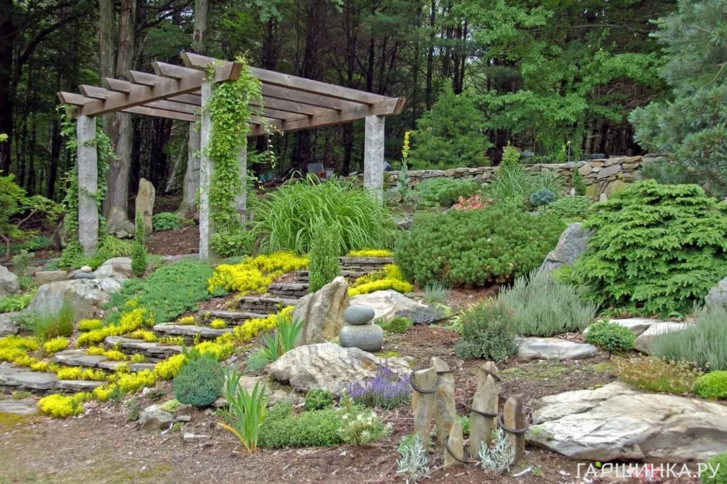 - Альпийская горка как концептуальная основа всей композиции участка.