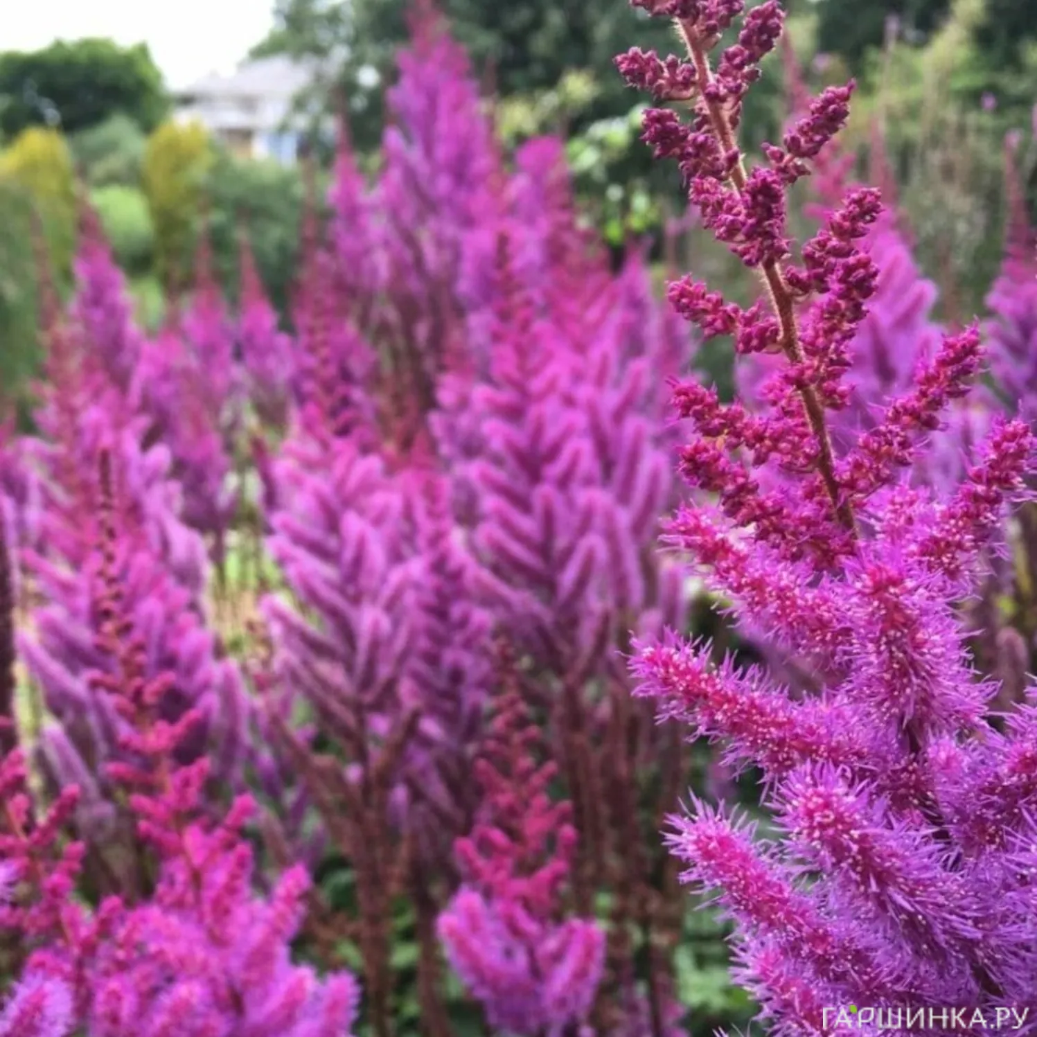 Род Астильба насчитывает около 40 видов, но в садоводстве наиболее распространены гибридные формы. Среди популярных видов можно выделить Астильбу Арендса, Астильбу китайскую, Астильбу Тунберга и Астильбу японскую. Современные сорта астильбы отличаются большим разнообразием форм и расцветок. По высоте их можно разделить на карликовые (30-50 см), средние (50-80 см) и высокие (более 80 см). Цветовая гамма включает различные оттенки розового, красного, лилового, а также белый цвет. Некоторые популярные сорта: 'Diamant' (белый), 'Fanal' (темно-красный), 'Bressingham Beauty' (розовый), 'Visions' (лиловый). При выборе сорта важно учитывать не только цвет и высоту растения, но и сроки цветения, которые могут варьироваться от раннего лета до поздней осени.