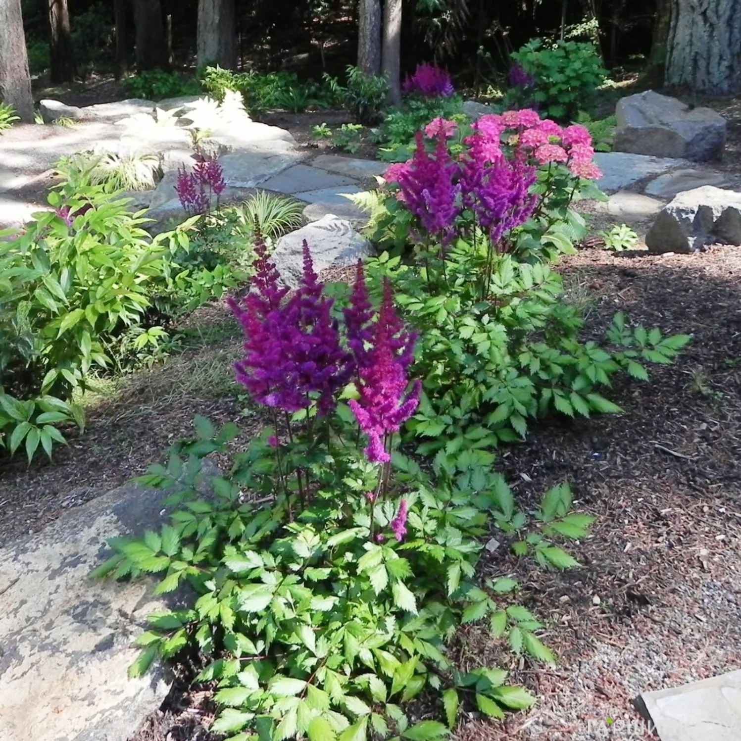 Благодаря своей универсальности, астильба может органично вписаться в сады различных стилей. В классическом английском саду она прекрасно смотрится в миксбордерах и вдоль садовых дорожек. В японском саду астильба может стать элементом композиции у водоема или в тенистом уголке. В природном стиле сада астильба отлично подходит для создания естественных групп, имитирующих природные заросли. В современном минималистичном саду монохромные посадки астильбы могут создать эффектный акцент. В романтическом саду пастельные сорта астильбы прекрасно сочетаются с розами и другими классическими садовыми цветами. При использовании астильбы в разных стилях важно учитывать не только сами растения, но и окружающие элементы ландшафта, такие как малые архитектурные формы, мощение, водные объекты.