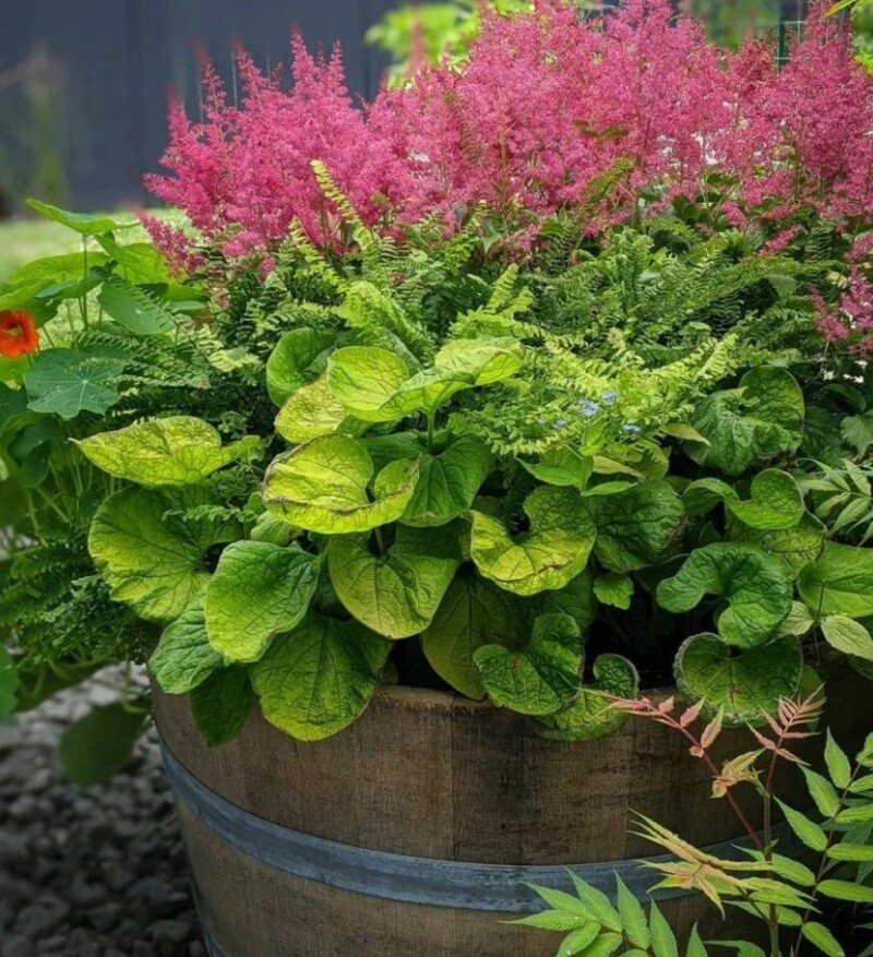 Выращивание астильбы в контейнерах открывает новые возможности для садоводов, особенно тех, кто ограничен в пространстве. При посадке астильбы в контейнер важно выбрать емкость подходящего размера - не менее 30 см в диаметре и глубиной. Контейнер должен иметь хороший дренаж, поэтому убедитесь, что в дне есть достаточное количество отверстий. На дно контейнера насыпьте слой керамзита или мелкого гравия толщиной 3-5 см для улучшения дренажа. Почвенная смесь для контейнерной астильбы должна быть легкой и питательной. Оптимальный состав: 2 части садовой земли, 1 часть торфа и 1 часть перлита или крупнозернистого песка. При посадке оставляйте расстояние от верхнего края горшка до поверхности почвы около 3-5 см для удобства полива. После посадки обильно полейте растение и замульчируйте поверхность почвы.