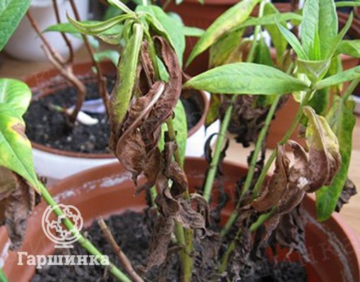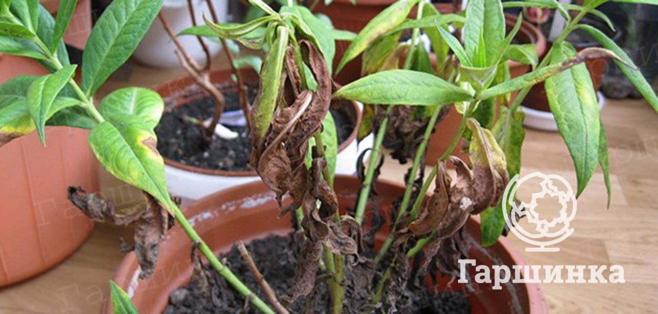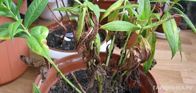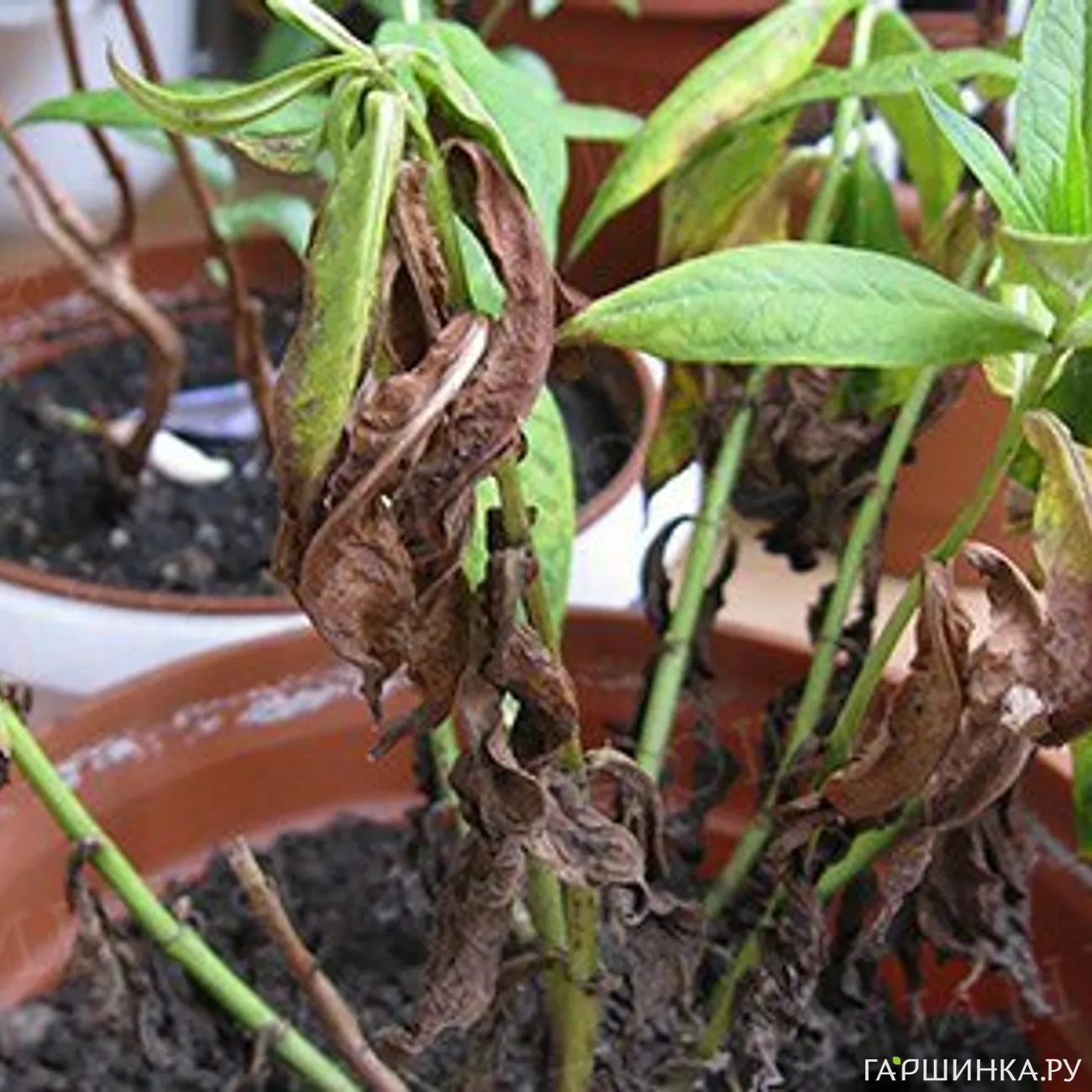 - ВЕРТИЦИЛЛЕЗНОЕ УВЯДАНИЕ стеблей поражает растения во время цветения, обычно развивается на кислых почвах. В короткий промежуток времени листья засыхают, на корнях появляется белый налет.
