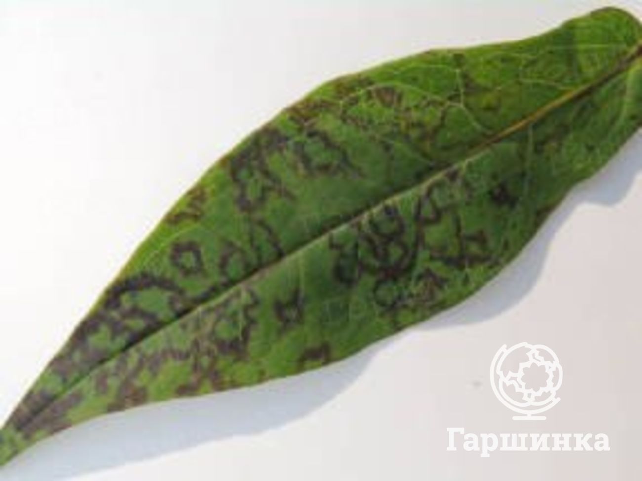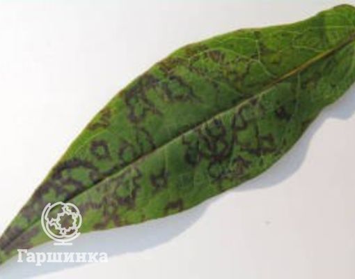 - КОЛЬЦЕВАЯ ПЯТНИСТОСТЬ – светлые круги на листьях в начале заболевания и деформация всего растения в конце.