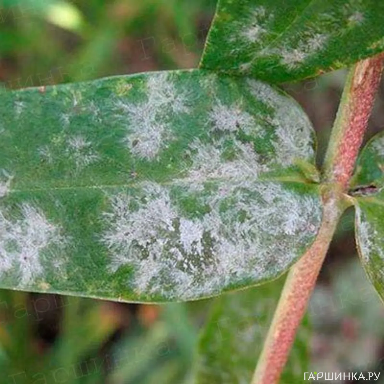 - МУЧНИСТАЯ РОСА – белый налет на растении, который очень быстро разрастается. Со временем цвет налета становится серым, листья усыхают.