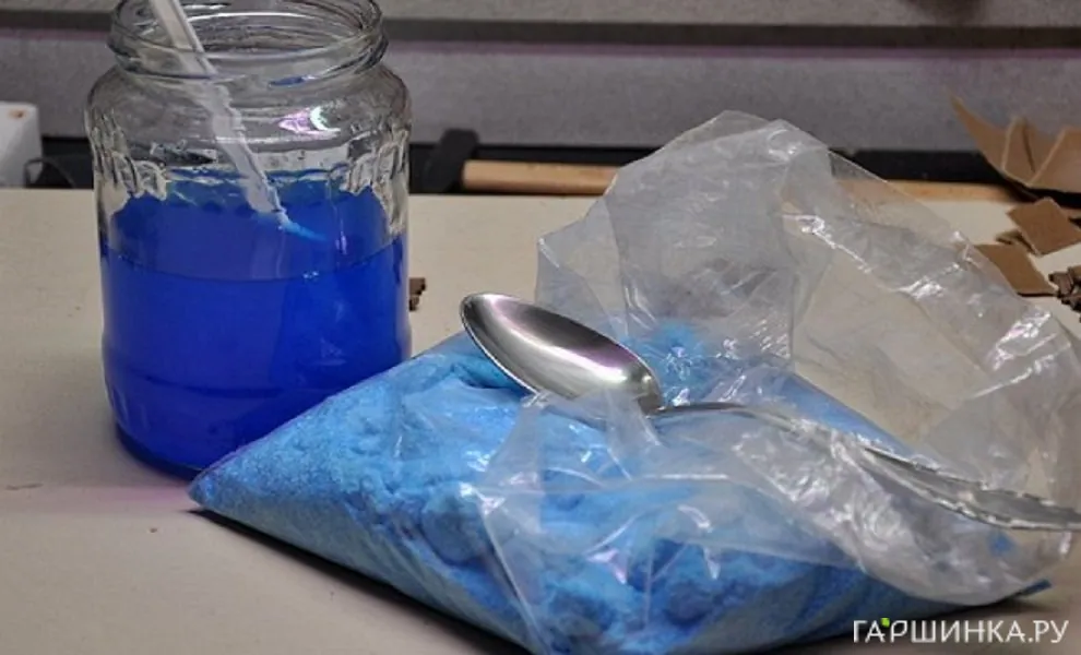 Необходимо приготовить 1 л 5% раствора медного купороса для опрыскивания яблони. Для этого 5 частей препарата (5%) нужно растворить в 95 частях воды (100%-5%=95%). То есть на 950 мл воды потребуется 50 гр медного купороса.