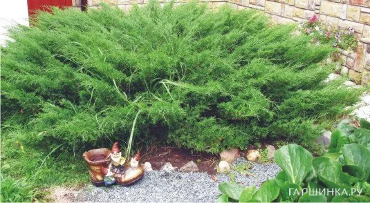 - Можжевельник казацкий – еще одна стелющаяся разновидность. Один из самых неприхотливых видов. Отличается чешуйчатой хвоей. В высоту может достигать 1,5 м. Используется на каменистых склонах, на газонах и в рокариях.