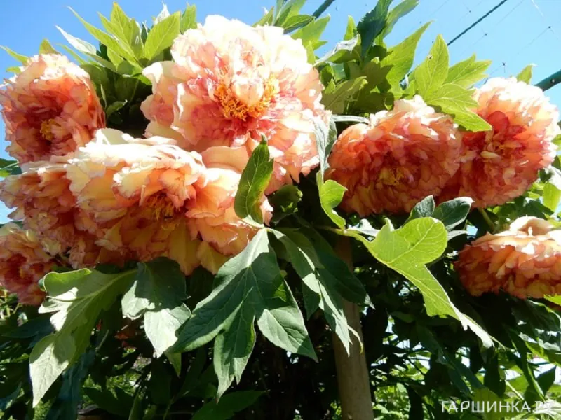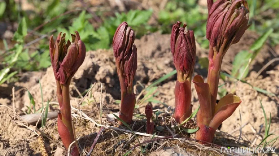 Древовидные пионы медленно растут в первые годы жизни, а цветки появляются, только когда куст вырастает до 60 см. В северных регионах могут пострадать от морозов, поэтому на зиму кусты рекомендуется укрывать лапником и лутрасилом.