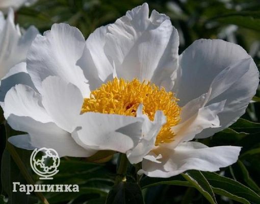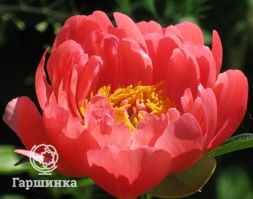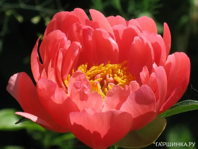- Полумахровые пионы. Их легкие, пышные цветки состоят из 5 и более лепестков, а в центре видоизмененные тычинки чередуются с обычными.