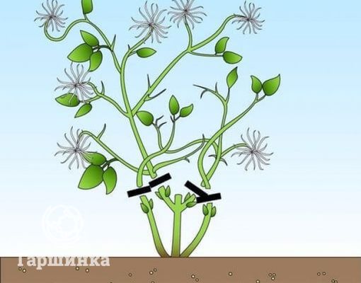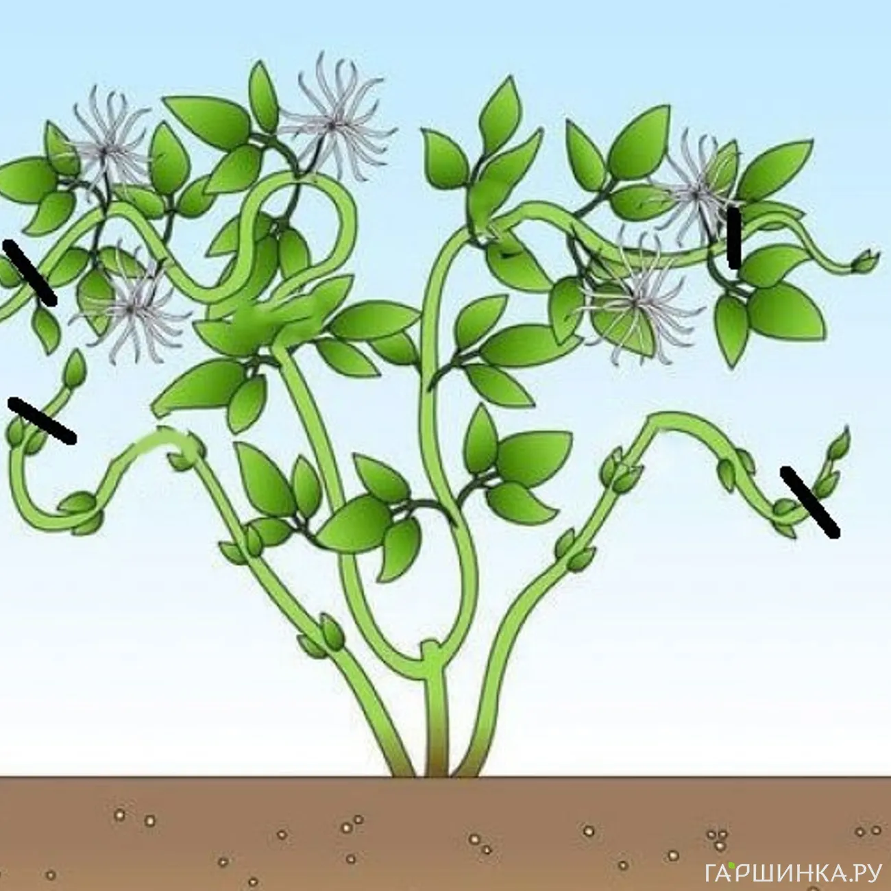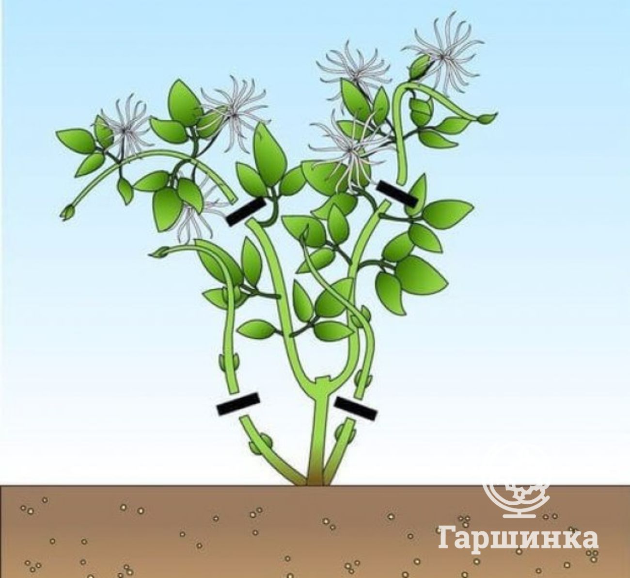 - Например, клематисы первой группы обрезки цветут на побегах прошлого года, соответственно, если мы обрежем их слишком сильно, в будущем сезоне они цвести не будут. Осенью у таких клематисы мы подрезаем только верхушки побегов.