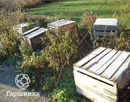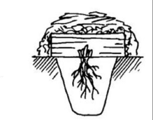 Укрытие клематисов 3 группы. С обрезанными до пеньков клематисами дела обстоят куда проще. Достаточно посильнее окучить побеги, накрыть перевернутым вверх дном деревянным ящиком, набросать сверху сухой листвы или того же лапника, и обмотать мешковиной или рубероидом.