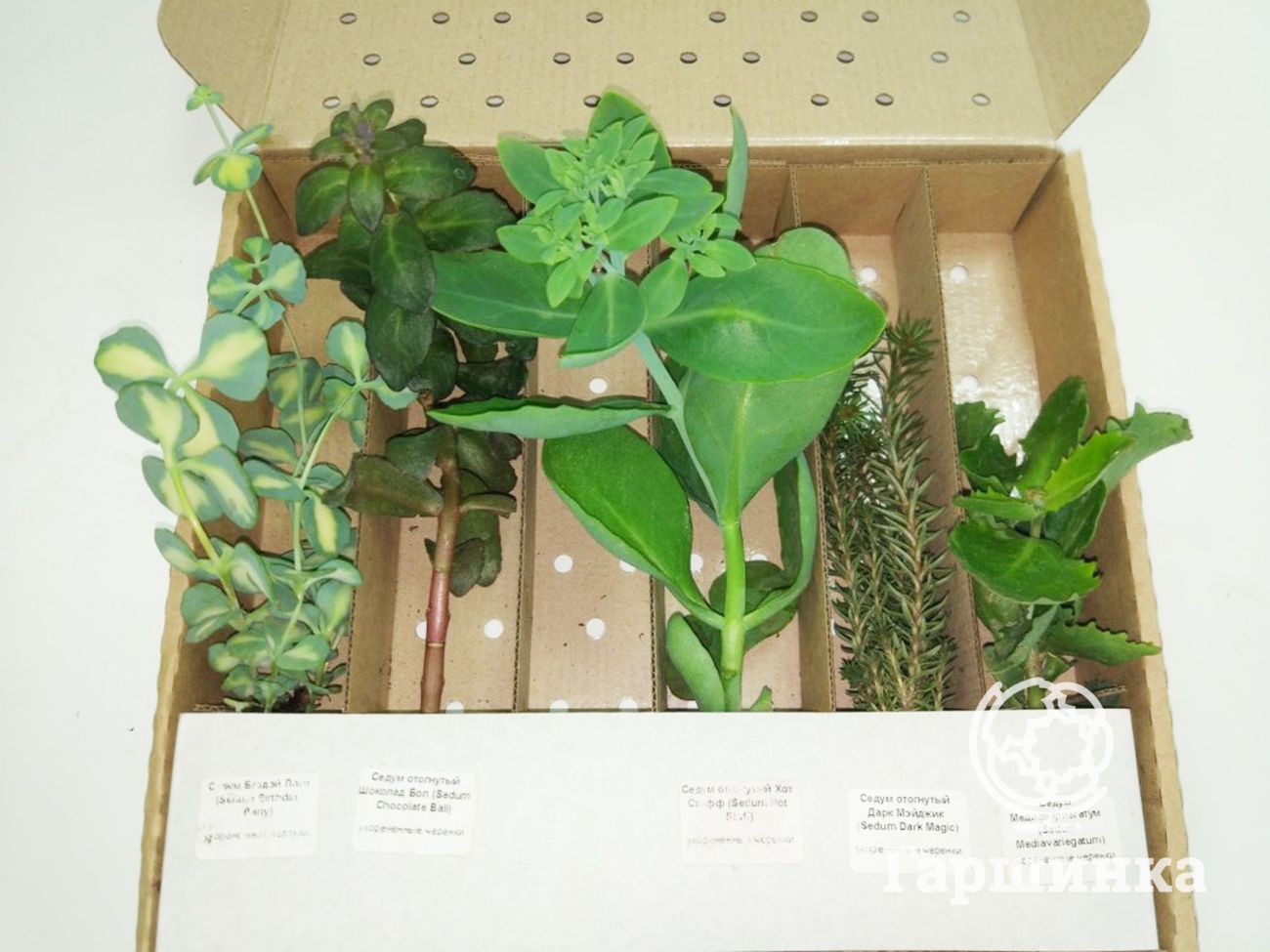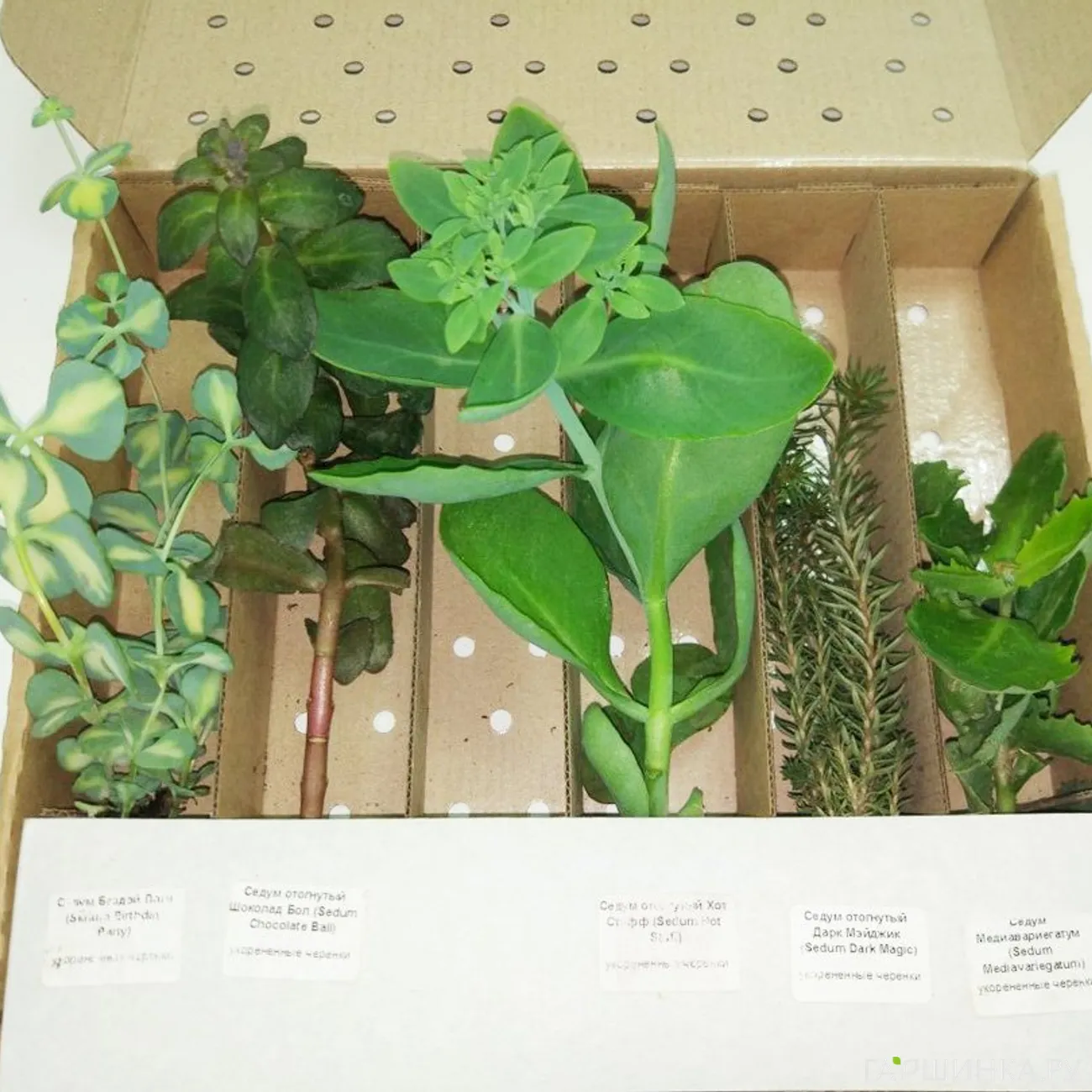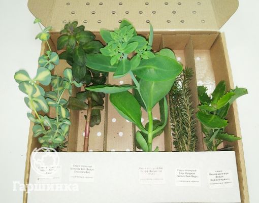 Мы реализуем седумы в виде черенков, укорененных в торфяные таблетки. Для их транспортировки используем специальные боксы, вентилируемые с двух сторон благодаря многочисленным отверстиям в крышке и на дне коробки.