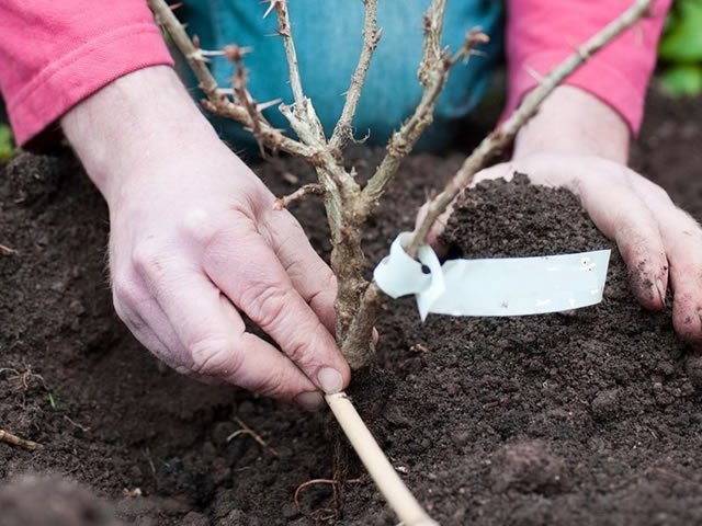 - По завершении посадки у кустика подрезают побеги примерно наполовину, оставляя над землёй не более 6 почек.