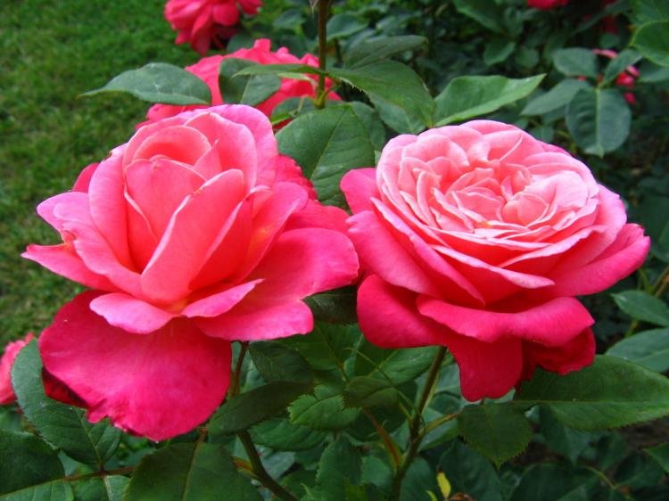 Кроме того, на фоне ярких и пастельных монохромных сортов чайно-гибридных роз самобытно выделяются двухцветные растения, на лепестках которых прослеживается плавный переход от одного тона к другому.