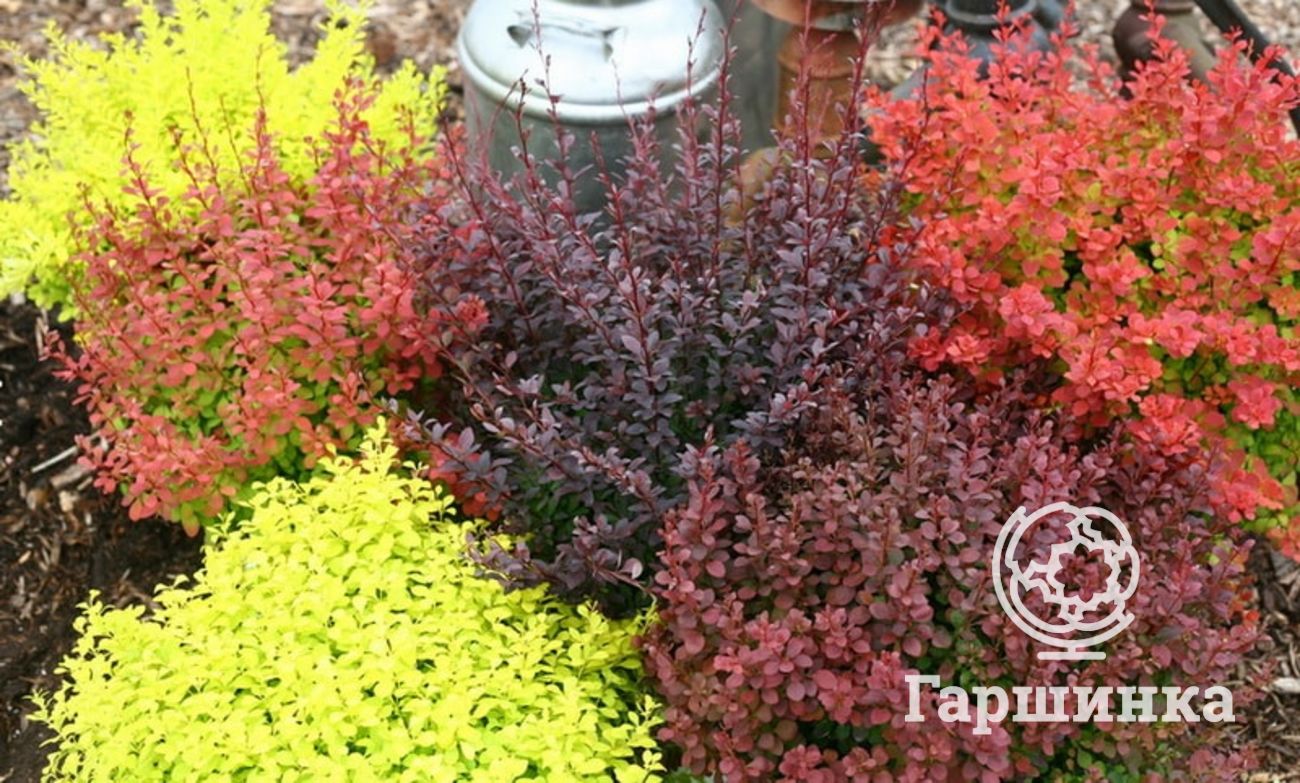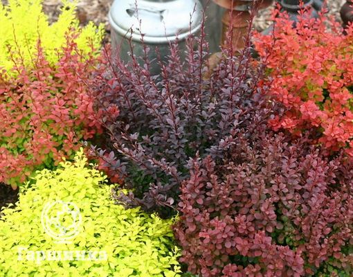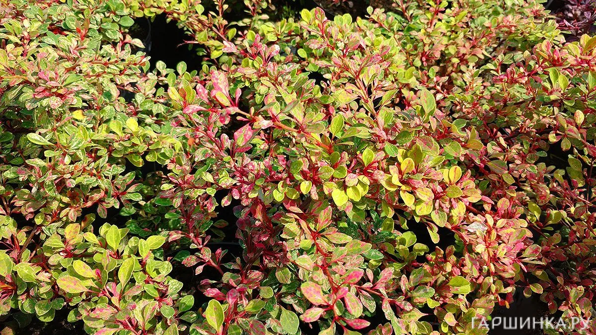 Барбарисы хорошо растут как на солнце, так и в полутени. Но имейте в виду, декоративная окраска будет проявляться только на солнце, в тени листва будет равномерно зеленой. Посмотрите: это один и тот же сорт барбариса - Арлекин. Только эти саженцы находились в полутени, а эти в течение суток были на солнышке.