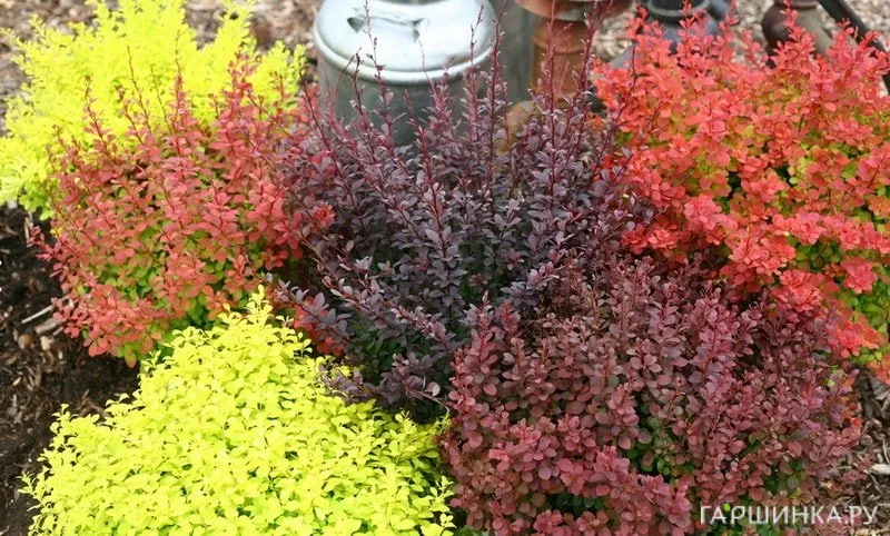 Известно множество разновидностей барбариса, но самым популярным является барбарис Тунберга. Это листопадный кустарник. Его высота обычно не превышает одного метра. Ветви тонкие, красные или бурые.