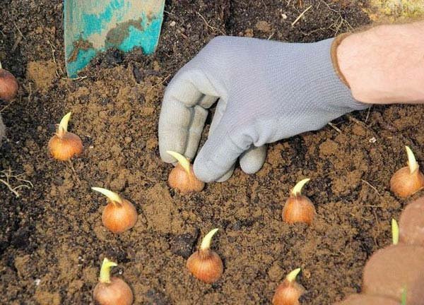 Луковка помещается в землю при посадке строго донышком вниз, а не вбок. Стандартная глубина посадки любых луковичных культур, включая и крокусы, составляет 6 – 7 см, что равняется трёхкратной высоте луковки. Предварительное протравливание посадочного материала повышает шансы на получение здоровых взрослых экземпляров. Можно на полчаса замочить луковицы в розовом растворе марганцовки или специального фунгицида.