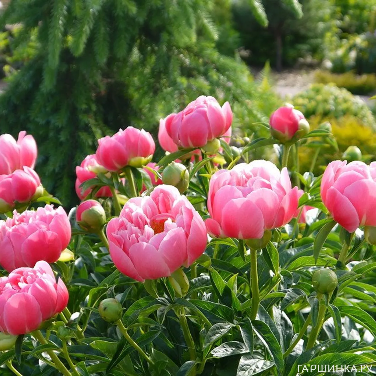 Для великолепных пионов найдется место в любом саду. Наиболее эффектны одиночные и групповые посадки пионов на фоне сочного газона. Уместны пионы в миксбордерах, в соседстве с другими декоративно-лиственными и цветущими многолетниками, возле дорожек и беседок. Подходящими соседями для пионов станут розы, флоксы, клематисы. Очень интересно сочетание пионов с хвойными растениями - можжевельниками, миниатюрными горными соснами. Пионы великолепны в срезке: букеты пионов долго стоят в воде, радуя глаз своей утонченной нежностью.