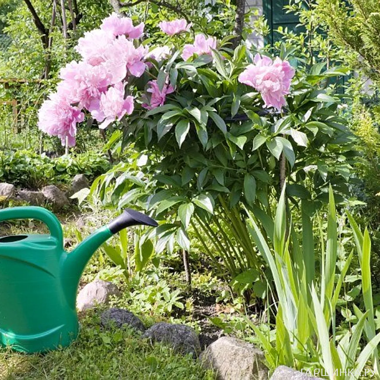 Уход за пионами заключается в поливах, подкормках и мульчировании. Почву содержим в состоянии умеренной влажности, хотя растения неплохо переносят засуху. Особенно важны поливы пиона весной, во время бутонизации и цветения, и осенью, в период закладки цветочных почек. Расход воды при поливе - 2-3 ведра на растение, чтобы промочить глубокие слои почвы, где располагается корневая система. В первые годы подкормки проводим внекорневым способом, а в последующем в течение вегетации вносят полный комплекс минеральных удобрений трижды за сезон: весной по снегу, в период бутонизации и спустя две недели после цветения. Уход за пионами осенью заключается в обрезке на уровне почвы, которая проводится после первых заморозков. Укрытие на зиму пионам не требуется - они отлично зимуют под снежным покровом.