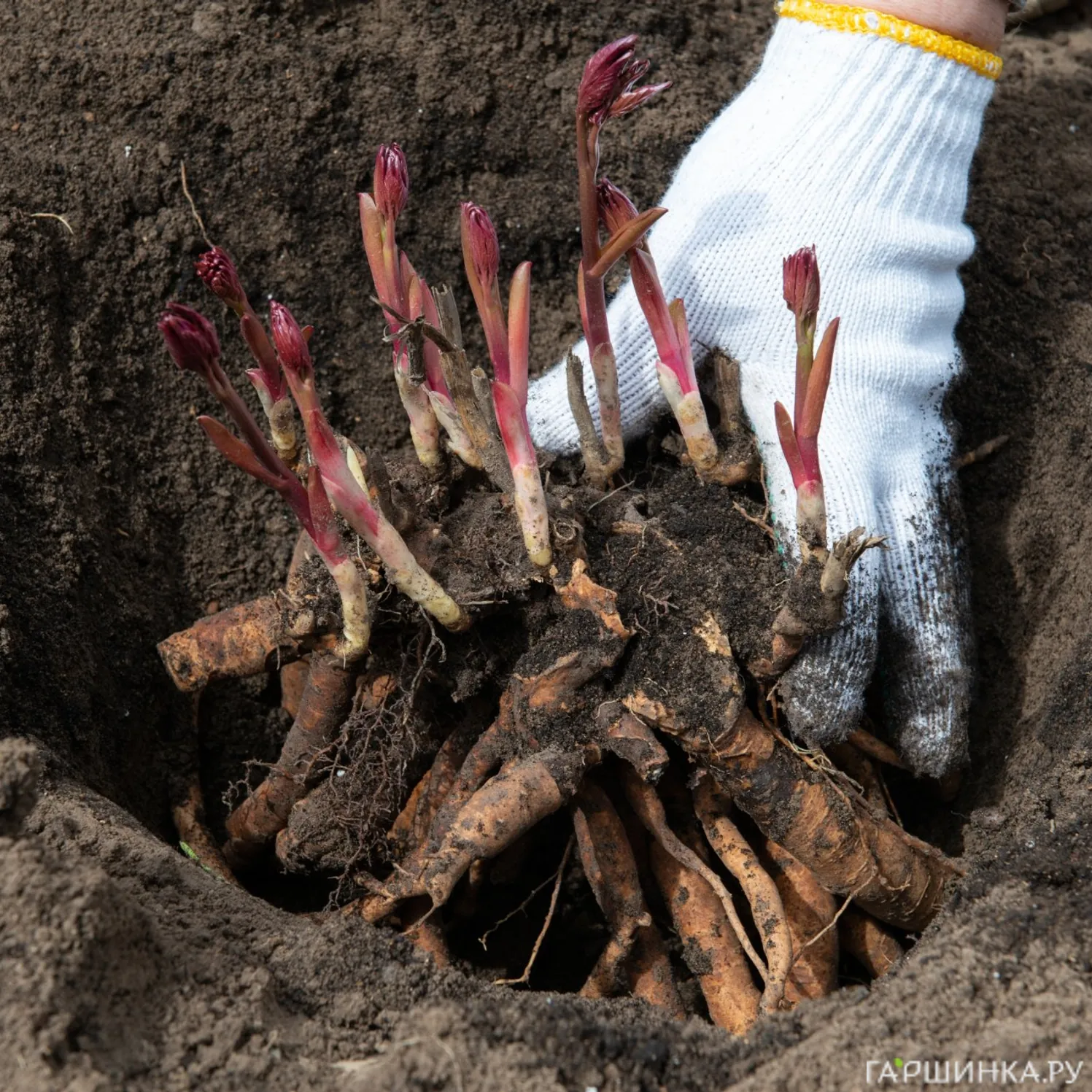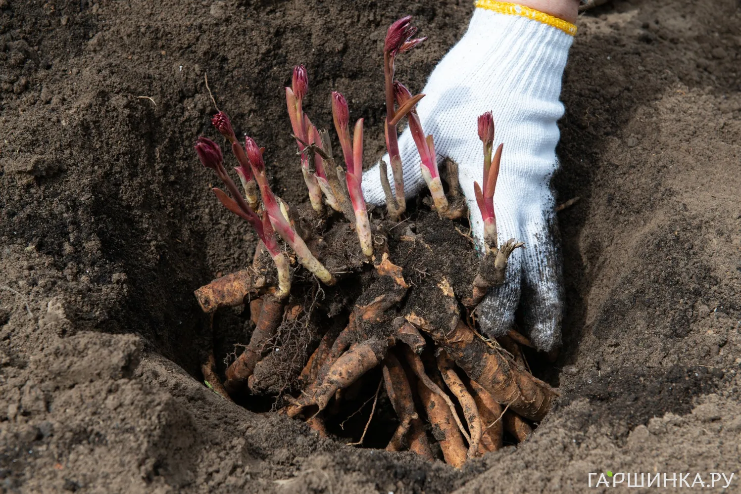 Этапы пересадки пионов: