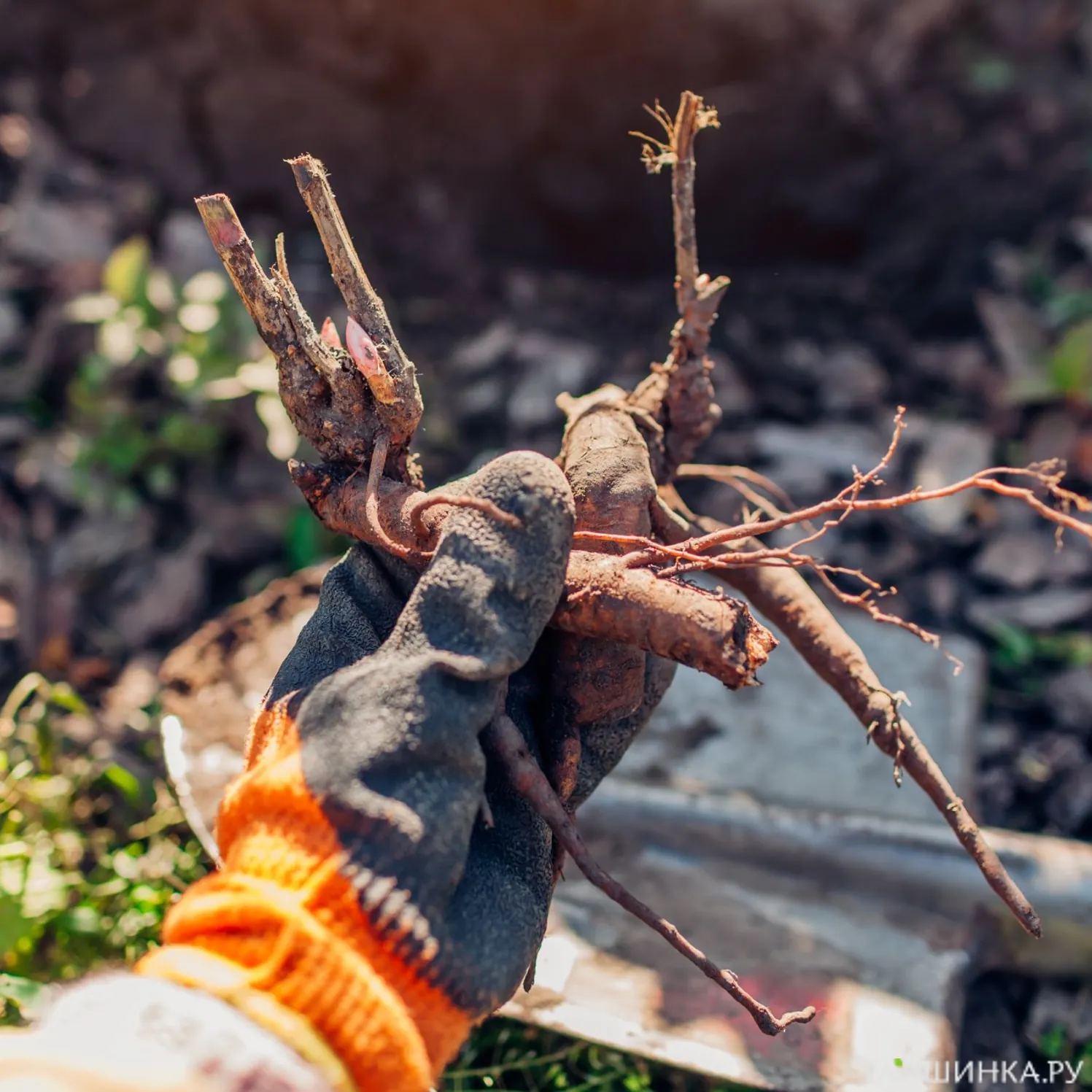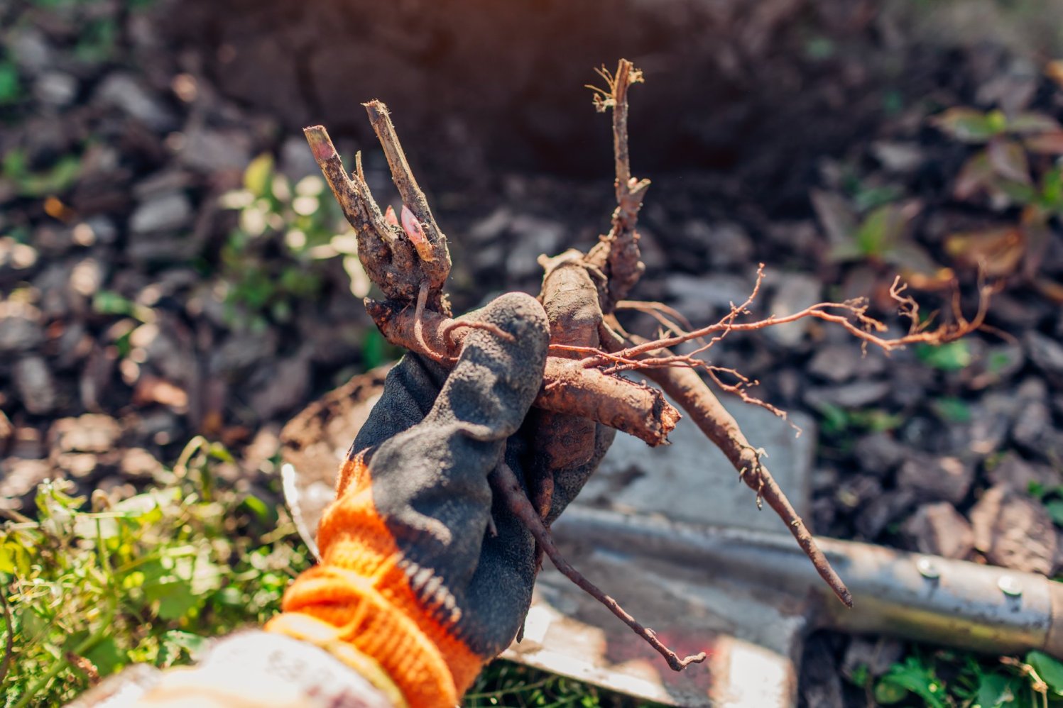 При выкапывании от побегов следует отступить на расстоянии в 15-20 см. Куст равномерно окапывается по кругу, после чего корневище аккуратно извлекается;