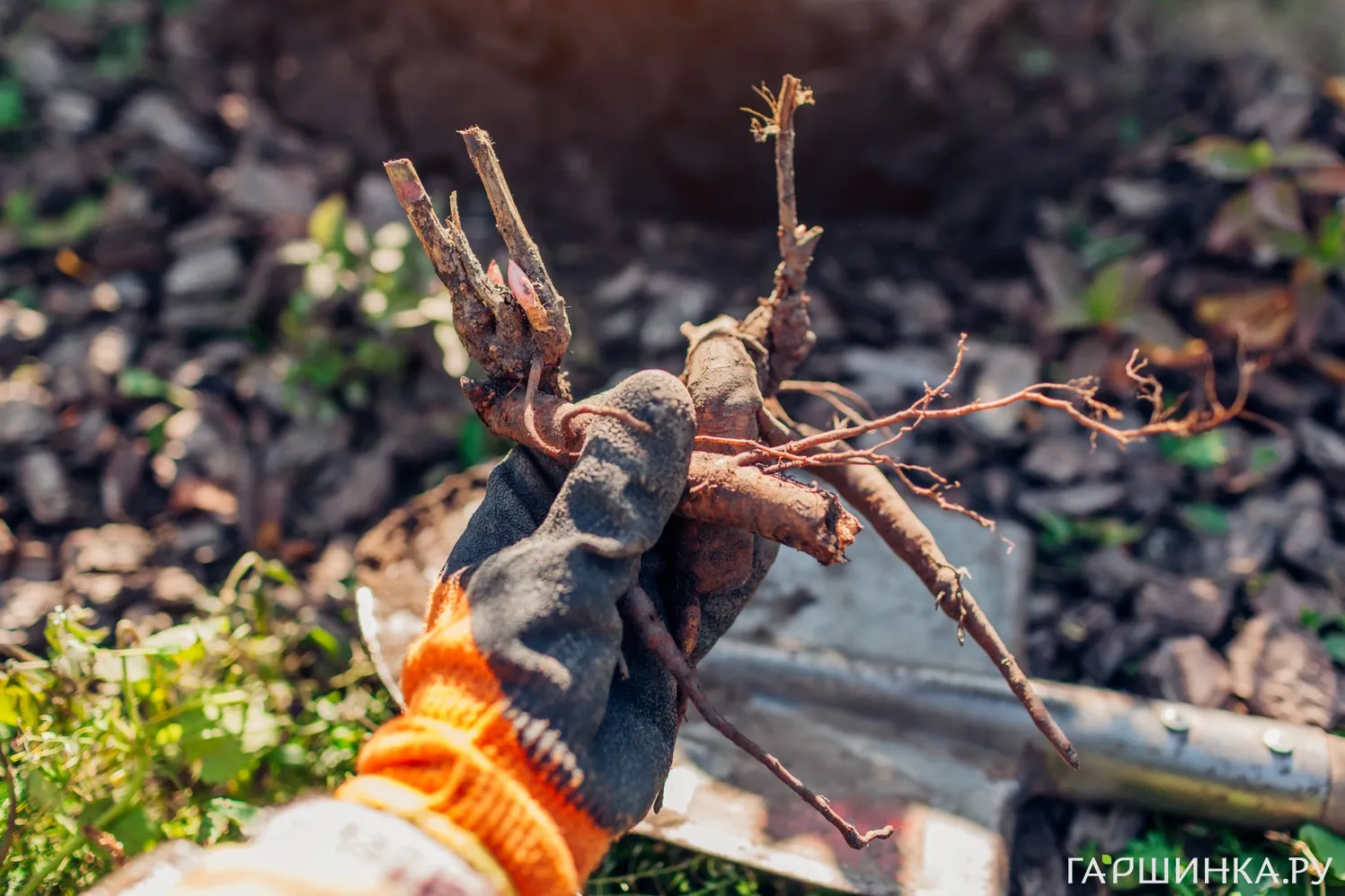 Предварительно до пересадки побеги требуется обрезать на высоту от 10 до 15 см выше уровня земли;