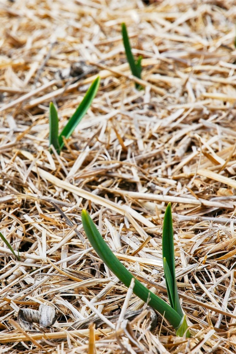 Мульчирование посадок чеснока - эффективный способ защиты от резких перепадов температур и сохранения влаги в почве. В качестве мульчи можно использовать торф, перегной, компост или опавшие листья. Слой мульчи должен составлять 3-5 см. Мульчирование проводят после первых заморозков, когда почва немного промерзнет. Это предотвратит преждевременное прорастание чеснока и защитит посадки от вымерзания в бесснежные зимы. Весной мульчу частично удаляют, оставляя тонкий слой между рядами для подавления роста сорняков и сохранения влаги. Органическая мульча, разлагаясь, также обогащает почву питательными веществами.