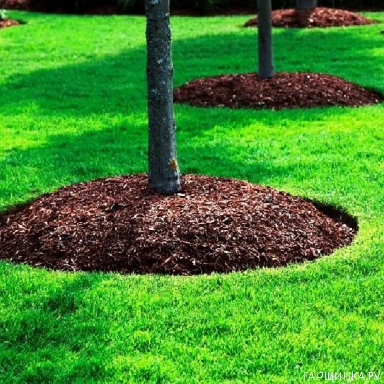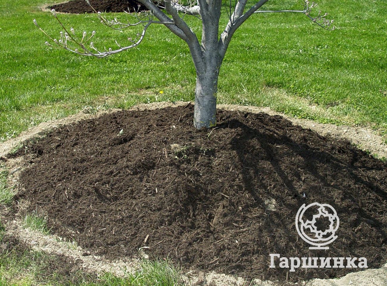 Мульчирование. Весной после рыхления почву укрывают каким-либо мульчирующим материалом (измельченная кора, перепревшая солома, перепревшая органика и др.) слоем 4-5 см. Мульча сохраняет влагу в почве, сдерживает рост сорняков, повышает активность микробиологических процессов в почве, сглаживает резкие колебания температур в почве. Однако по мере гниения в мульче резко увеличивается количество насекомых. Это привлекает птиц и грызунов, что может стать настоящей угрозой для дерева.