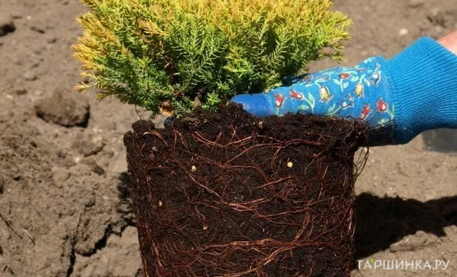 - Посадка. Лучшим временем для посадки можжевельника считается осень или ранняя весна. Наиболее подходящий возраст саженцев – 3-4 года. Для посадки копают отдельные ямы или траншеи (если саженцы более молодые) глубиной около 70 см и шириной от 60 до 90 см, в зависимости от объема земляного кома.