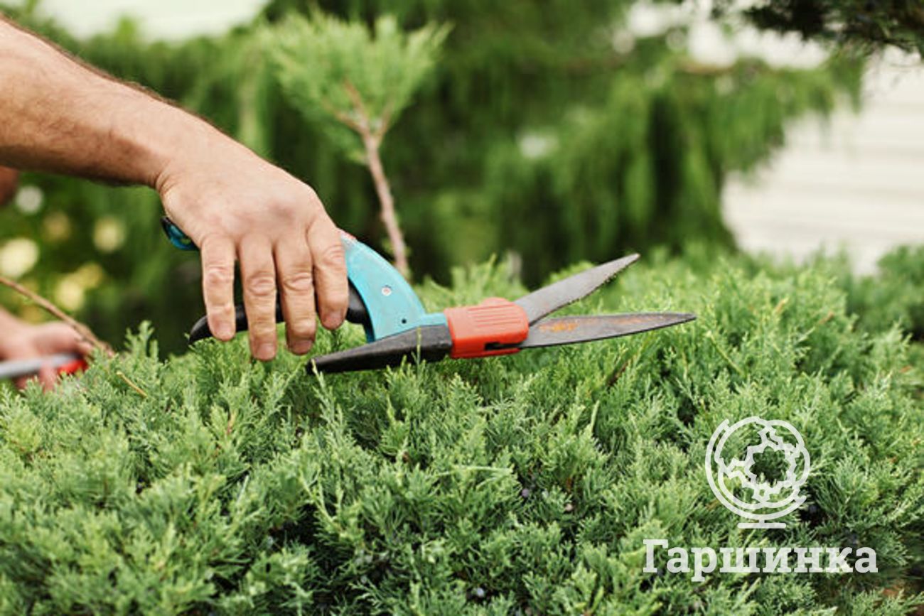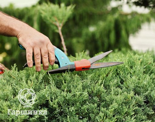 - Формирование живой изгороди. Первую обрезку осуществляют весной, удаляя сухие и подрезая сильно выходящие за пределы кроны побеги. Стрижка изгороди производится в одном направлении, иначе ее окраска будет неоднородной. К обрезке верхушек приступают, когда растения достигают необходимой высоты. Можжевельник – довольно медленно растущее растение, всего за сезон проводится не более двух стрижек. Шаровидным сортам можжевельника при желании можно придать сферическую форму, а конические и колонновидные содержать в виде трапеции.