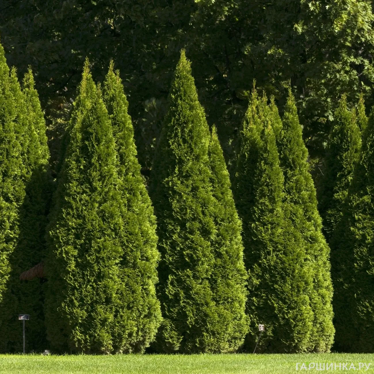 Одним самых популярных представителей этой группы является туя. Из всех ее видов наиболее подходящей для выращивания на территории России является туя западная. Для создания живой изгороди рекомендуется два ее сорта – Смарагд и Брабант.