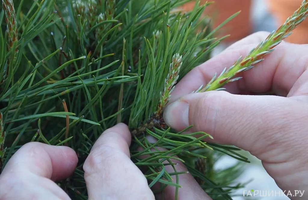Желательно при обрезке не использовать секатор, а прищипывать «свечки» пальцами. Лезвия секатора повреждают молодые хвоинки, в результате они желтеют, внешний вид дерева портится. Именно так поступают японцы, прародители культуры бонсай. Даже взрослые деревья с огромным количеством побегов они методично прищыпывают вручную.