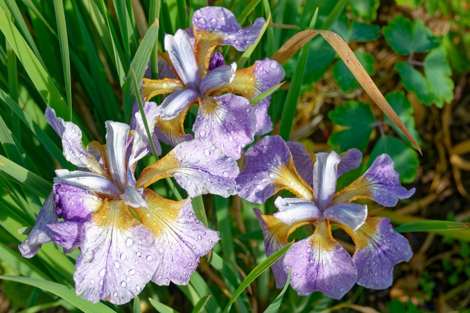 Осенью листву обрезаем до 10–15 см, оставляя «пеньки». В средней полосе и северных регионах сибирские ирисы зимуют без укрытия, даже при малоснежной зиме. При посадке в южных регионах потребуется затенение в жару.