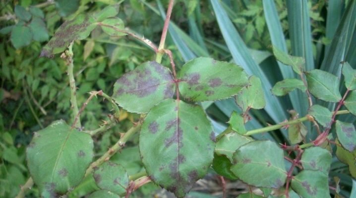 Некрозы коры. На стеблях появляются удлиненные бурые пятна, кора деформируется, засыхает, образуются расщелины. При поражении некрозом роза очень быстро теряет декоративность. Листья, побеги буреют и усыхают. На отдельных участках поражения могут наблюдаться очаги спороношения грибка, в виде налета. Цветение очень слабое или вовсе не наблюдается. При отсутствии лечения кусты полностью высыхают за 2-3 года. Важно отметить, что небольшие трещины, царапины и следы от срезов, образующиеся в ходе механической обработки саженцев, некрозами не считаются. Они не представляют опасности для здоровья саженца.