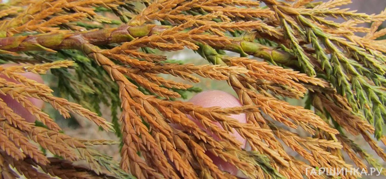 PS: Не путайте ожог с естественным побурением хвои, как это происходит у туи. Перед зимовкой ее хвояхвоинки накапливают защитные пигменты, в результате чего растение меняет окраску на красно-бурую.