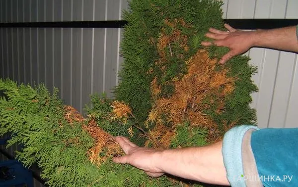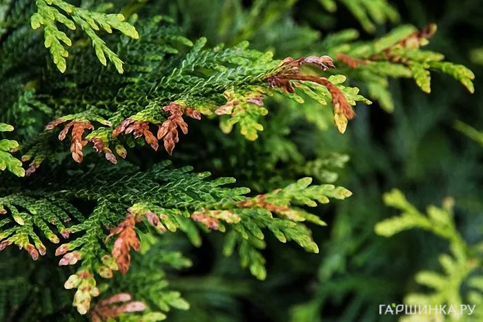 · Обгорание хвои. О причине обгорания мы уже говорили выше. Если вас застала такая неприятность, ранней весной полейте саженцы теплой водой и опрыскайте биостимулятором, например, Экогель-Антистресс.