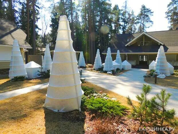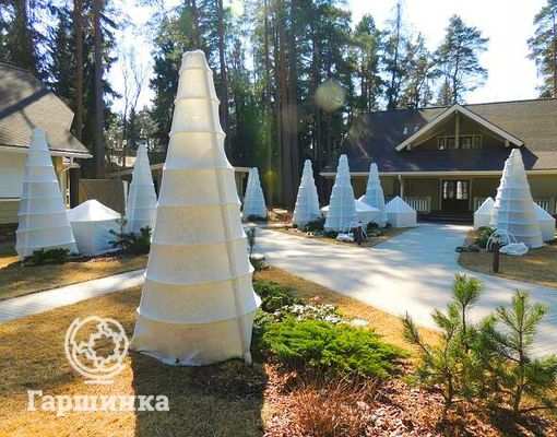 Во избежание солнечный ожогов, на зиму туи рекомендуется укрывать нетканым материалом. Весной укрытие можно снять только когда почва оттает и прогреется. В противном случае под теплым весенним солнышком хвоя проснется, начнет активно испарять влагу, а еще спящие корни не смогут компенсировать потери, хвоя пожелтеет, высохнет и уже не сможет восстановиться.