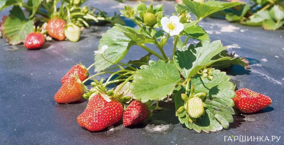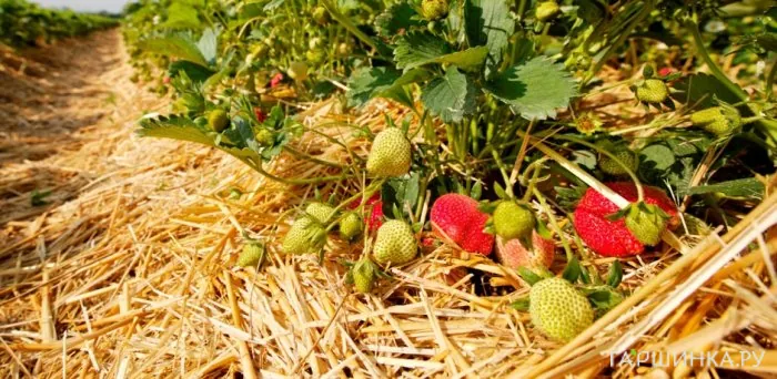 Пользу мульчирования в садоводстве переоценить сложно. Она сохраняет влагу, препятствует росту сорняков, почва под мульчей более рыхлая и питательная. В случае с клубникой мульча защищает ягоды от контакта с землей, снижая тем самым риск возникновения гнилей. Мульчирование необходимо проводить дважны за сезон — ранней весной и осенью. Сой мульчи — от 4 до 7 см. В качестве мульчирующего материала можно использовать солому, сухую траву, опилки, перегной, а также нетканый материал. Хороший эффект дает выращивание клубники под геотекстилем. Главное условие при выборе любого варианта — точка роста должна находиться на уровне почвы.