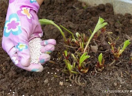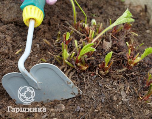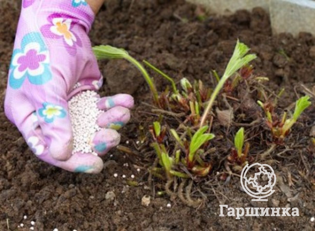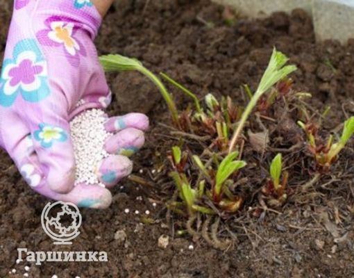 Земляника очень отзывчива на рыхление почвы. Этот прием улучшает доступ кислорода к корням, помогает бороться с сорняками. Рыхление почвы удобно совмещать с внесением удобрений. Весной земляника более всего нуждается в азоте, так как этот элемент способствует нарастанию зеленой массы. Для подкормки можно использовать мочевину, аммиачную селитру, птичий помет, растворенный в воде. При использовании сухих гранулированных удобрений, разбросайте их вокруг кустиков из расчета 35-40 г/м², почву слегка прорыхлите, тем самым заделывая удобрения. При наличии куриного помета растворите одну его часть в 15-20 частях воды и полейте растения (1 ведро на м²).