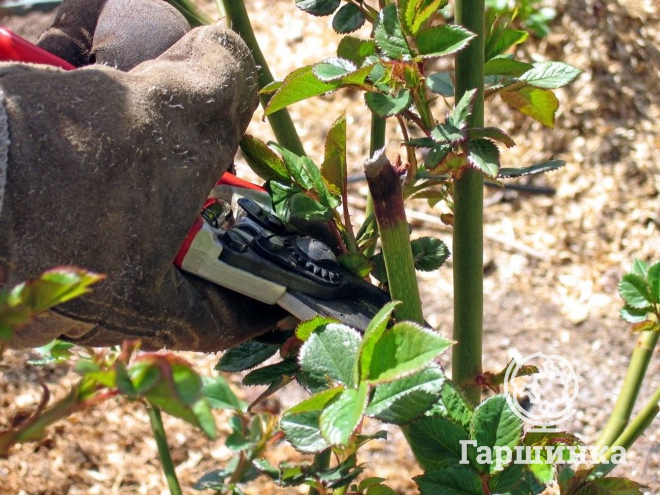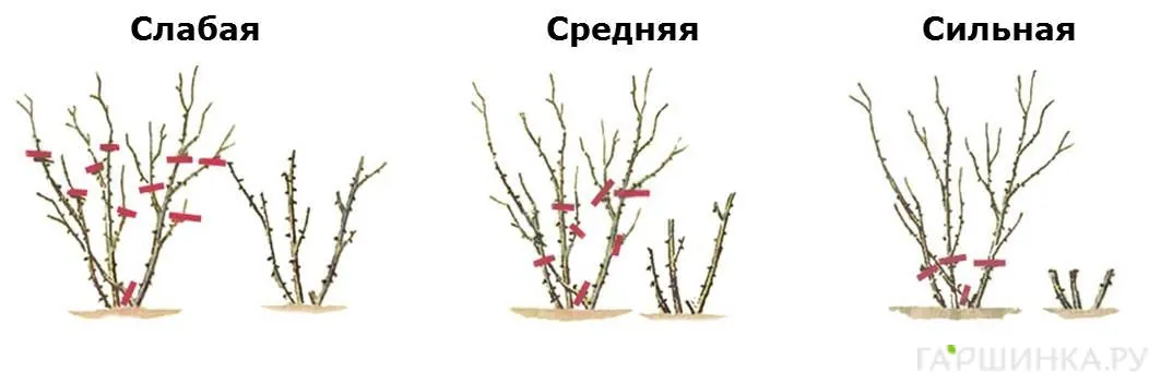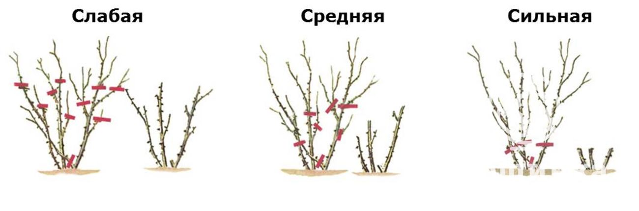 · Сильная обрезка стимулирует рост побегов от основания куста. Она необходима прежде всего слабым растениям, для того, чтобы сформировать хороший скелет розы. Зачастую такая обрезка проводится при посадке. Злоупотреблять таким приемом не стоит, частая сильная обрезка истощает силы растения.