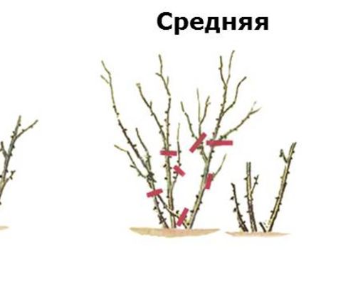 · Умеренная и слабая обрезка стимулирует рост почек нижу места обрезки. Каждый побег сформирует множество боковых ветвей, которые зацветут. Такая обрезка необходима, чтобы сделать куст более объемным.