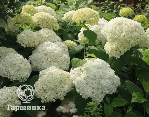 Сорт Анабель (Annabelle) – быстрорастущий, в высоту достигает 1,5 м. Соцветия крупные, до 25 см в диаметре, цветки зеленоватые, позже становятся чисто белыми, долго не увядают. Зимостойка, выносит морозы до -40 °С.