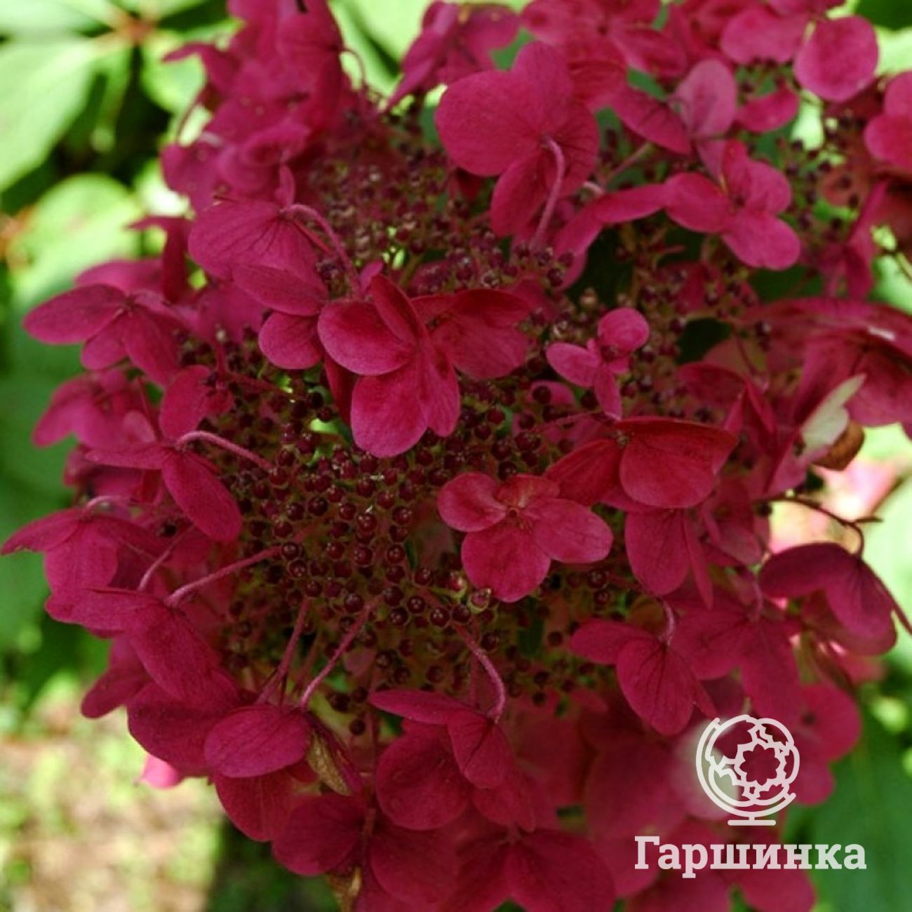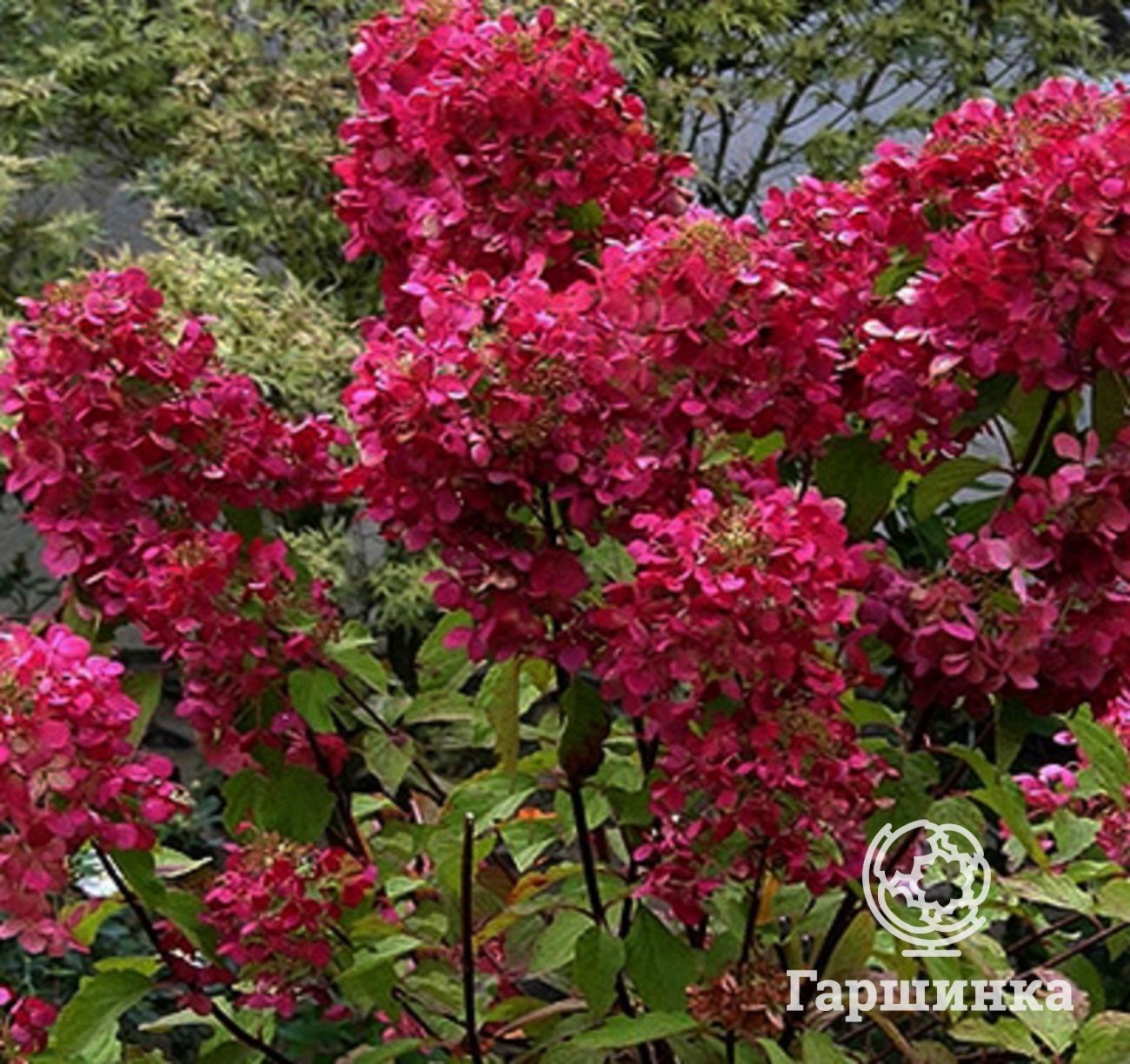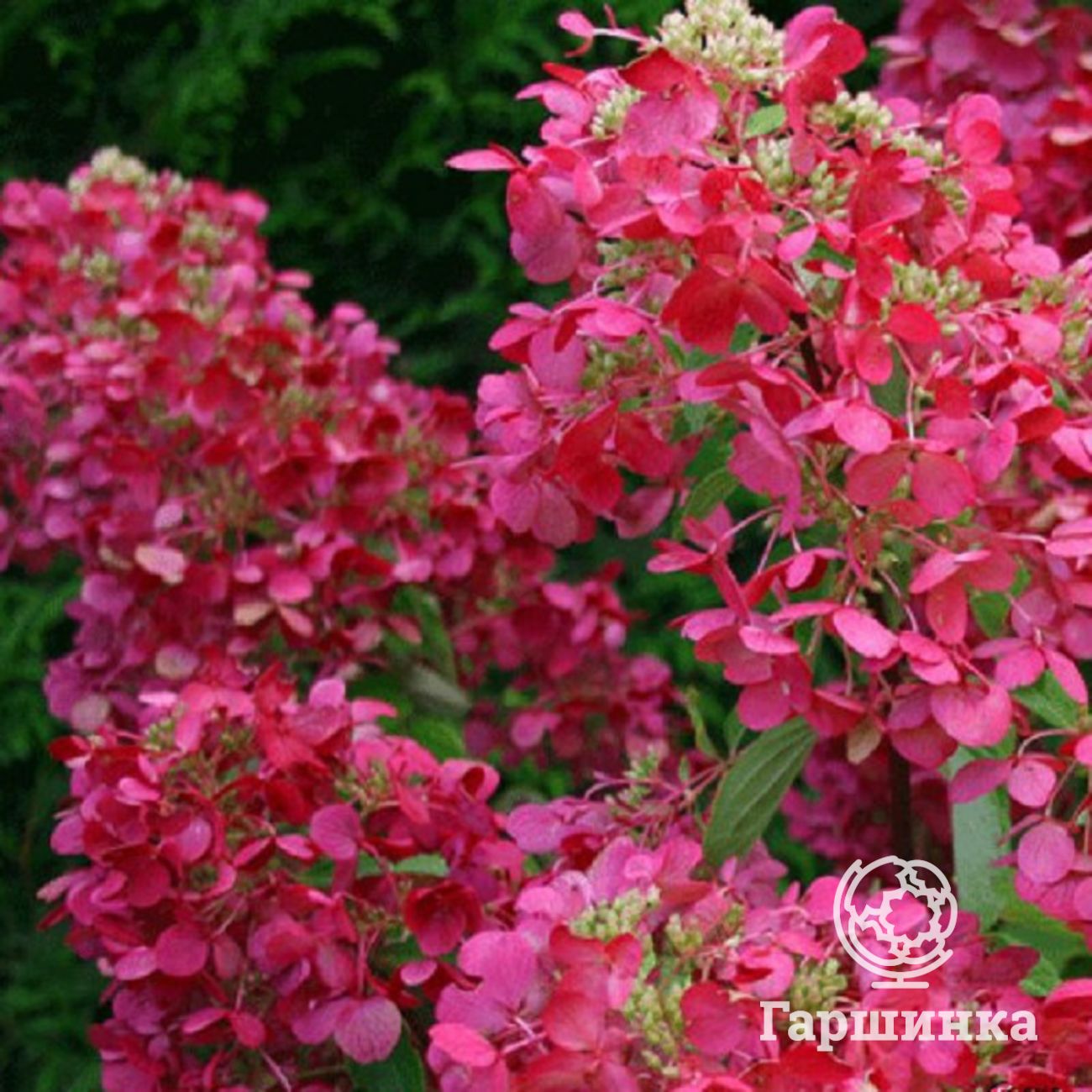 Сорт Даймонд Руж (Diamond Rouge) – компактный куст до 1,5 м высотой. Соцветия очень крупные, многочисленные, в начале цветения они белые, затем стремительно розовеют, а после приобретают интенсивный красный цвет. Эта гортензия высоко зимостойка, зимует без укрытия.