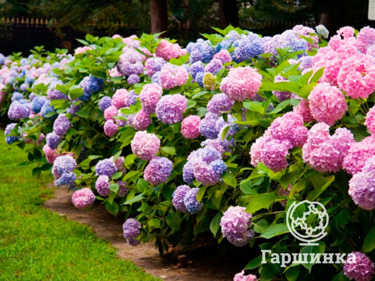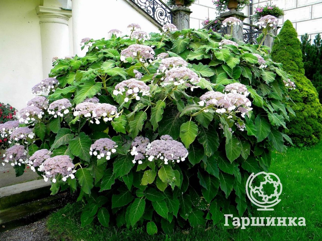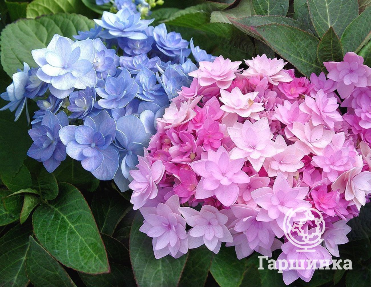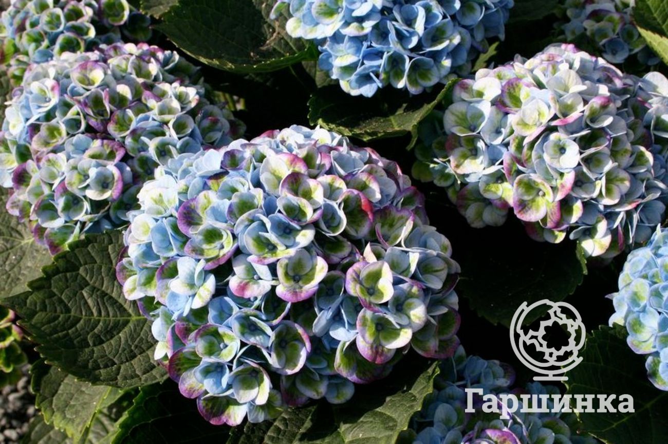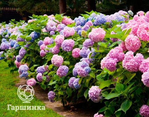 Гортензия макрофила You&Me Together – кустарник высотой до 125 см, шаровидные соцветия до 25 см в зависимости от кислотности окрашены в розовые или фиолетово-синие тона.
