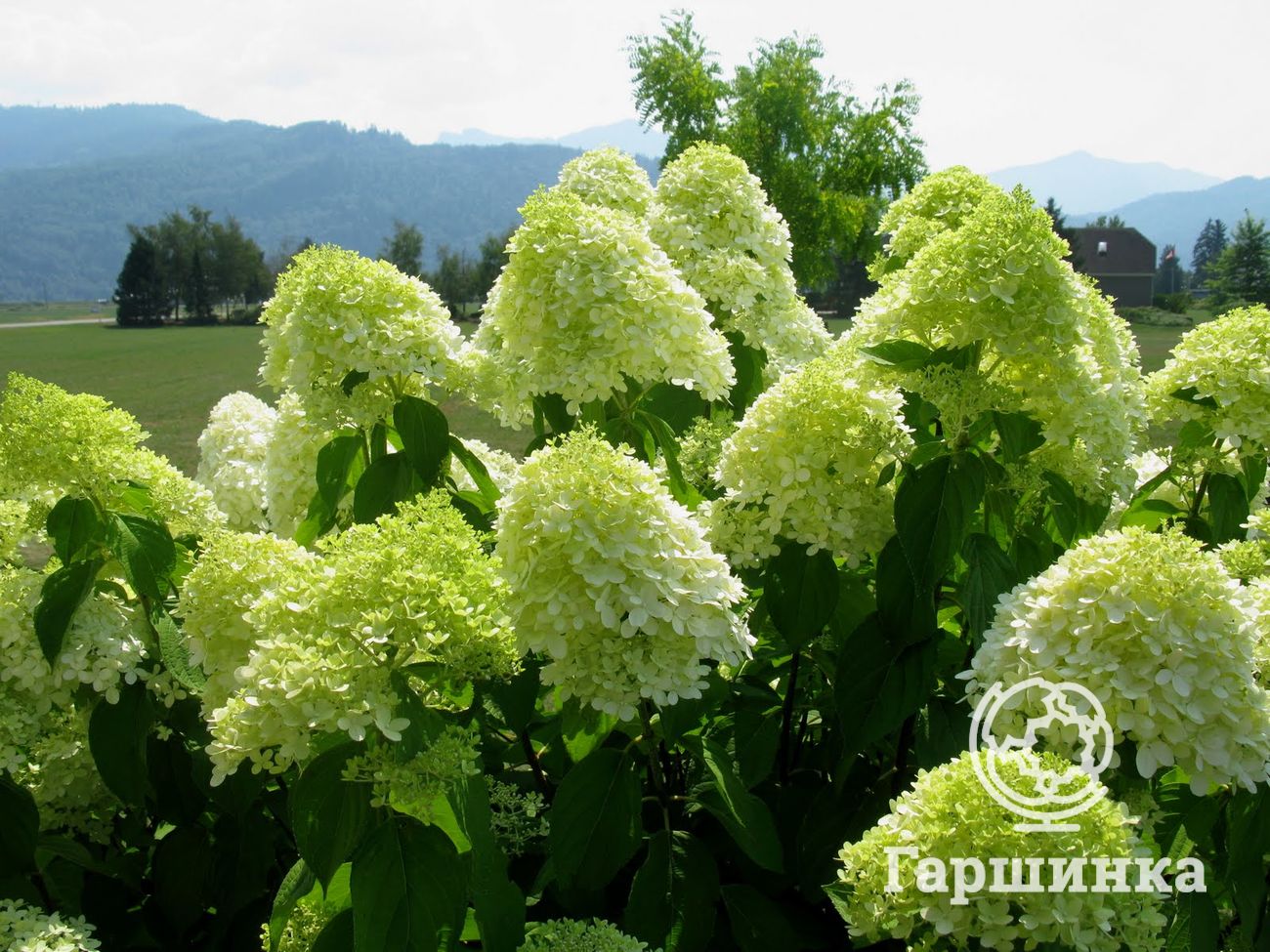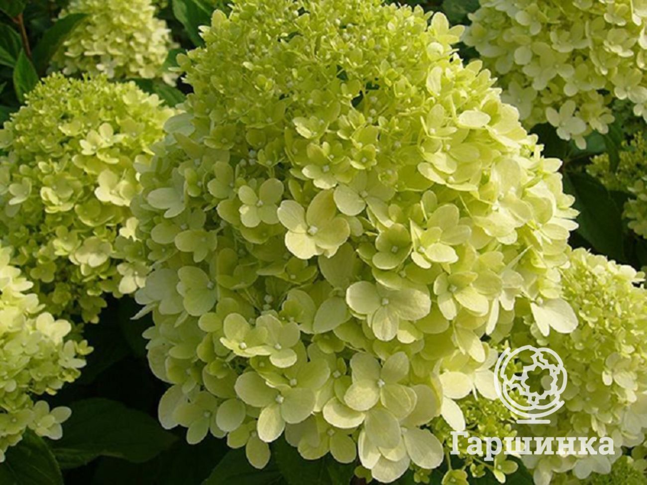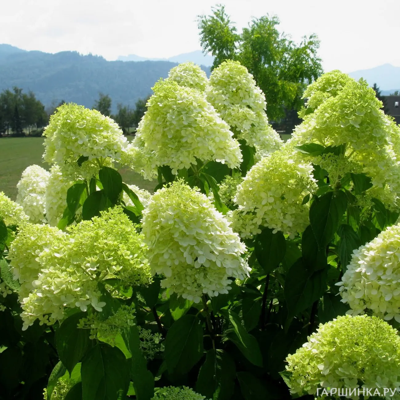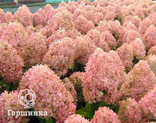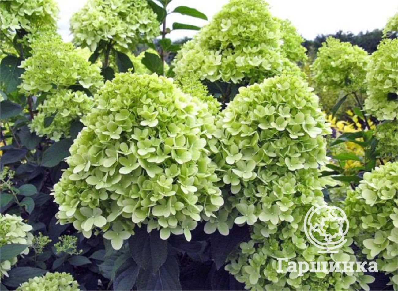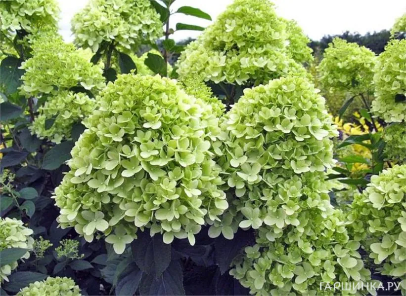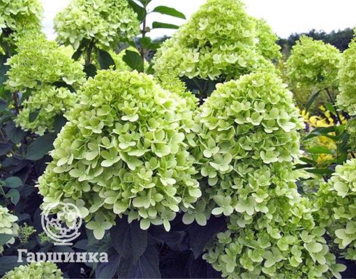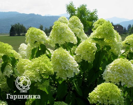 Сорт гортензии Лайм лайт (Limelight) – обильно цветет и отличается необычной окраской – зеленоватые цветки к осени белеют, приобретая лимонный оттенок. Цветет с июля по сентябрь, выдерживает морозы до -29 °С.