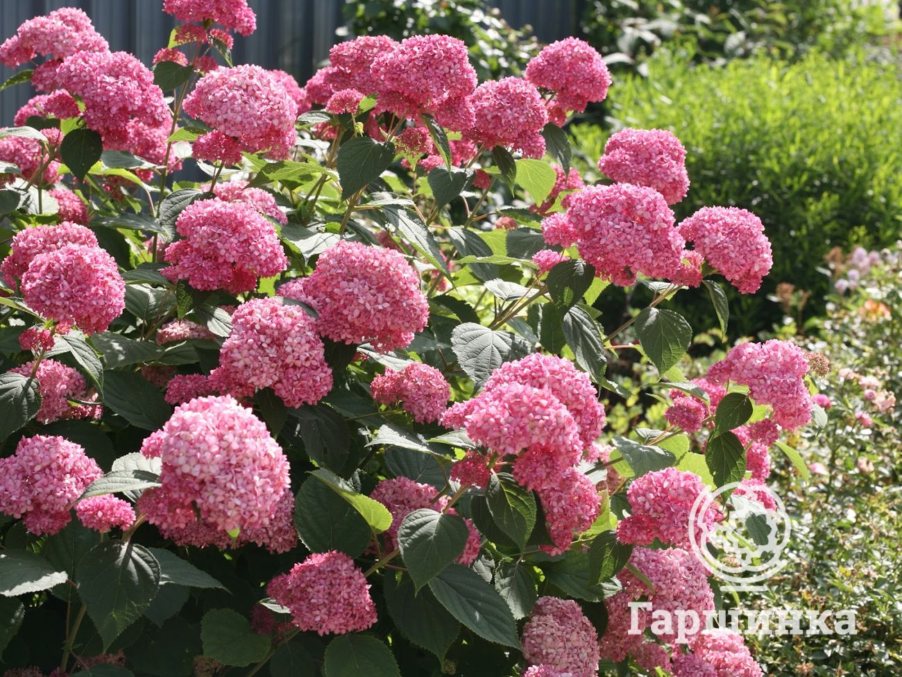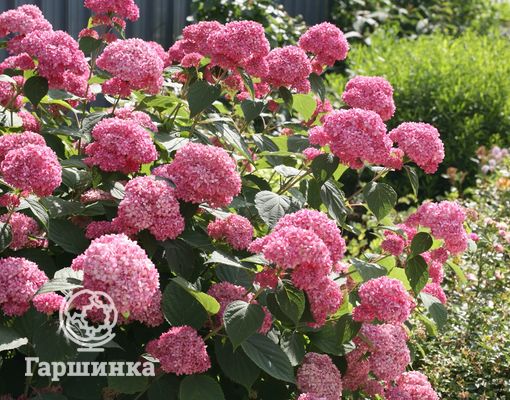 Гортензия древовидная Пинк Анабель (Pink Annabelle) – высокодекоративный, неприхотливый, выносливый сорт. Высота до 1,5 м, цветет на молодых побегах, хорошо переносит обрезку, причем, чем интенсивнее обрезка, тем крупнее соцветия. Цветет с июля по сентябрь, цветки насыщенно-розовые.