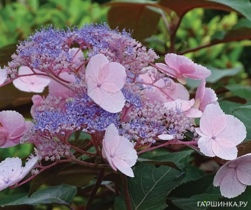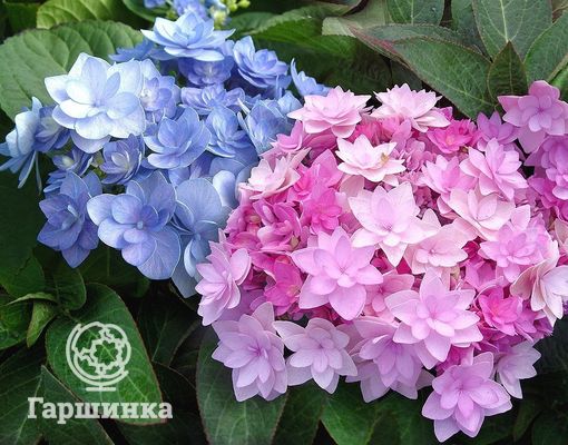 Сорт You&Me Love – цветущий с мая по сентябрь, отличается очень нежными махровыми цветками. В щелочной почве они розовые, в кислой – голубые. Выдерживает морозы до -29 °С.